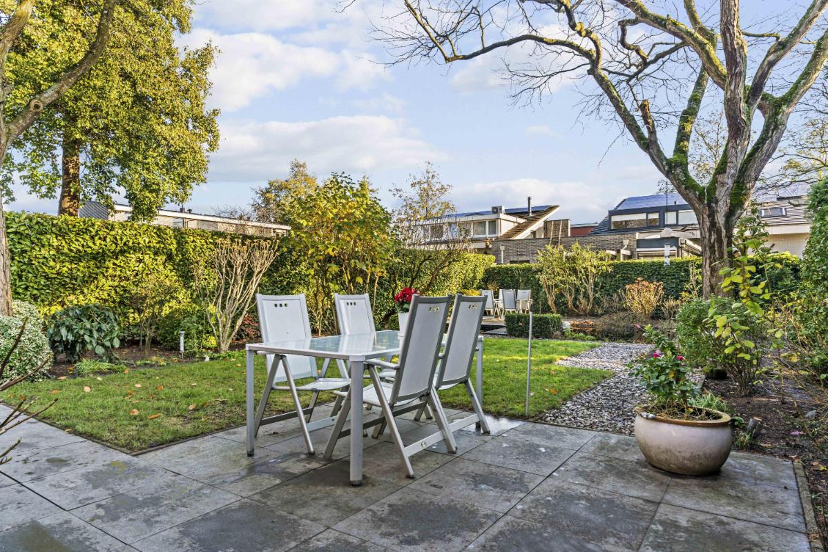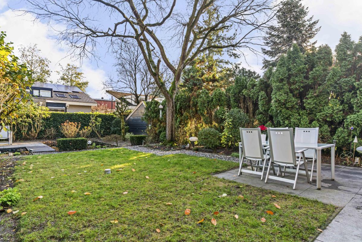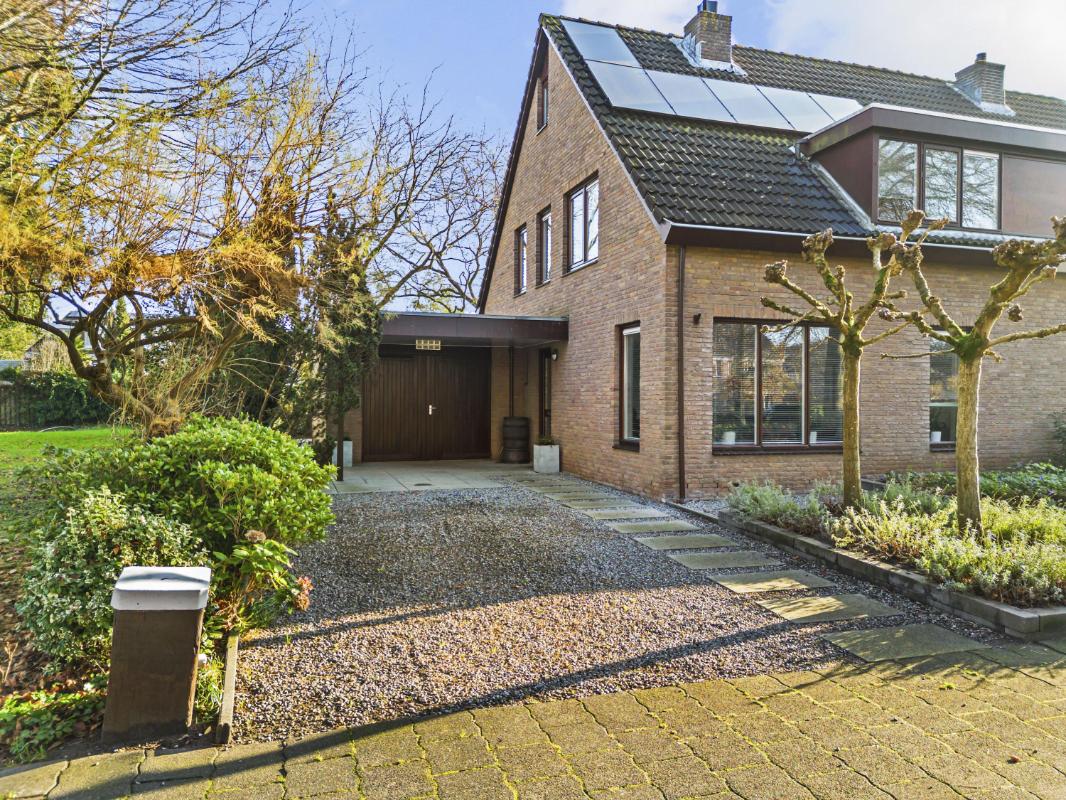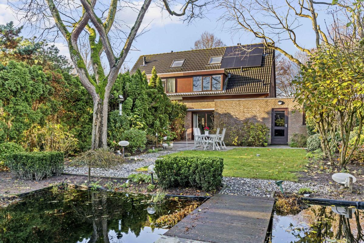 De ruime achtertuin beschikt over veel groen en privacy, is compleet met een vijver en royaal plek voor diverse, sfeervolle terrassen. De tuin is bereikbaar via de schuifpui bij de keuken, de deur in de bijkeuken of langs de zijkant van de woning. De garage biedt voldoende ruimte voor opslag of een auto, terwijl de carport aan de voorzijde extra parkeergelegenheid creëert. De voor-, zij- en achtertuin zijn allemaal keurig onderhouden en dragen bij aan het vrije gevoel rondom de woning.