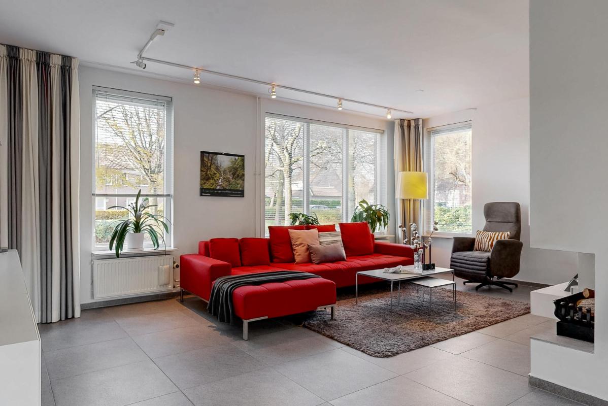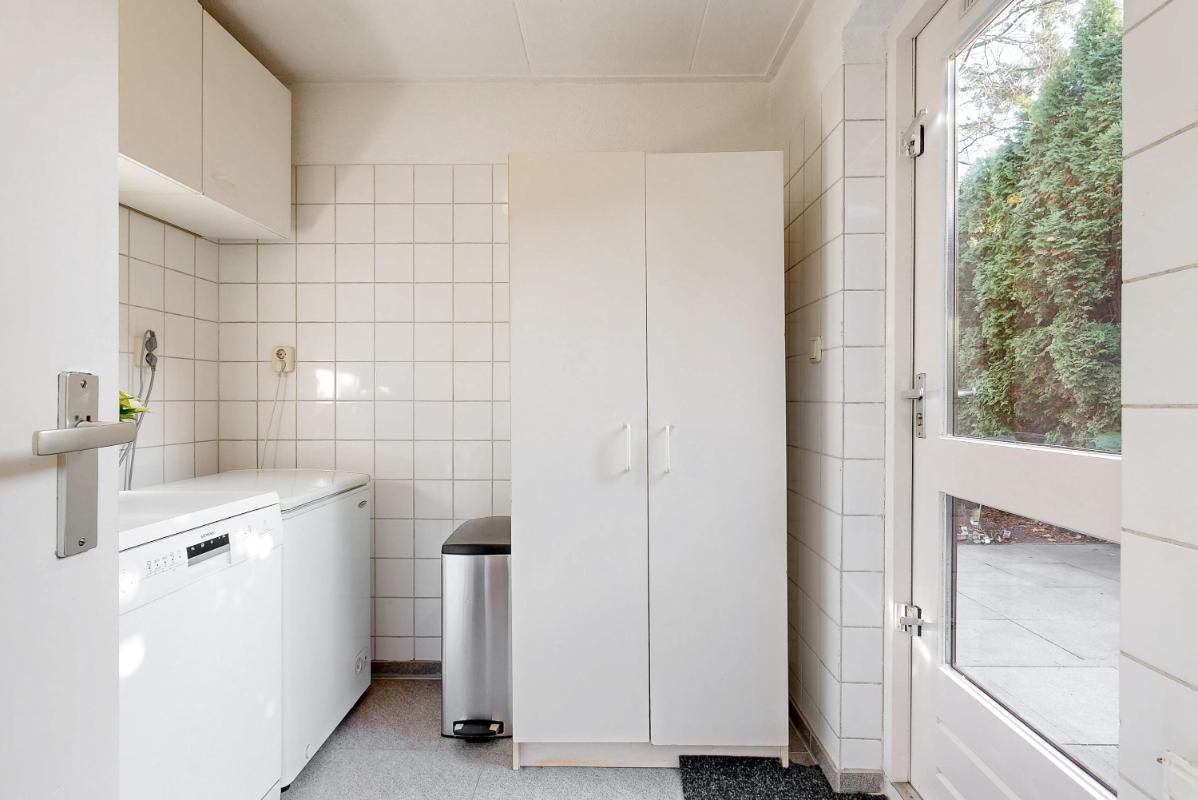 Vanuit de ruime voortuin, compleet met carport en parkeerplaats op eigen terrein, stap je de royale hal, met toilet, binnen. Vervolgens betreed je de woonkamer, welke beschikt over een ruime en gezellige zithoek met open haard, perfect voor knusse avonden. De moderne, nette vloer met vloerverwarming zorgt voor extra comfort, en via de schuifpui aan de achterzijde heb je direct toegang tot de tuin, waardoor binnen en buiten naadloos in elkaar overlopen. De goed onderhouden en modern ogende keuken is compleet met inbouwapparatuur. Hier kun je heerlijk koken en tafelen. Aansluitend vind je de praktische bijkeuken met aansluitingen voor wasmachine, droger, magnetron en vriezer, plus een deur naar de tuin voor extra gemak.