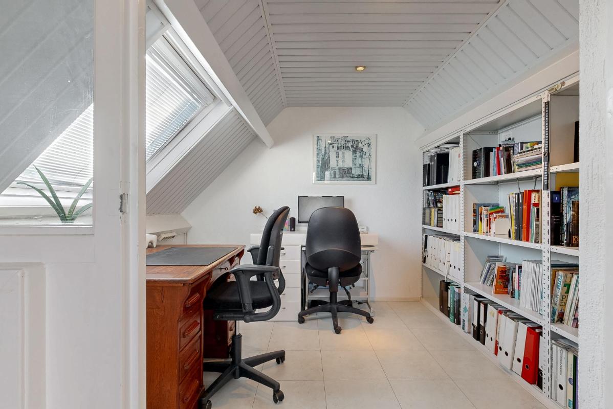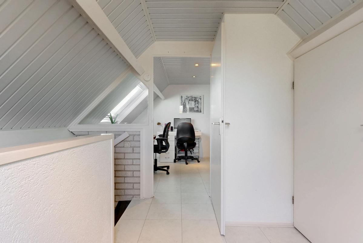 Op de eerste verdieping bevinden zich drie slaapkamers, waarvan twee met vaste inbouwkasten voor optimale opbergruimte. De badkamer is keurig onderhouden, voelt hedendaags aan en beschikt over alles wat je nodig hebt om te kunnen ontspannen. De tweede verdieping biedt een werkkamer die ook als slaapkamer kan dienen, ideaal voor thuiswerken of gasten. Hiernaast is er ook nog volop bergruimte achter de knieschotten.