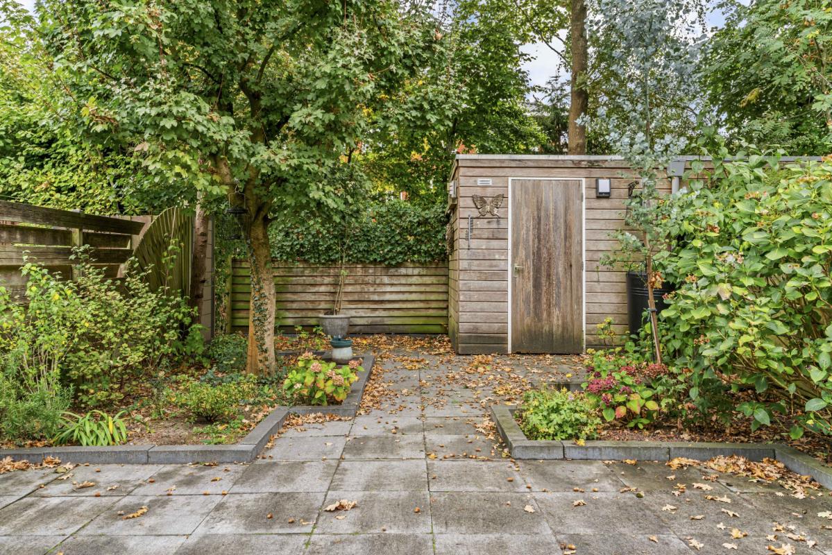 De achtertuin, bereikbaar via de keuken, is een oase van rust. Deze keurig onderhouden tuin, gelegen op het oosten, biedt een ruim terras, een handige berging en veel privacy dankzij omliggend groen. Hier geniet u van de ochtendzon in alle rust. Wilt u 's avonds van de zon genieten? Creëer een sfeervol terras in de royale voortuin, die met zorg is aangelegd en onderhouden.