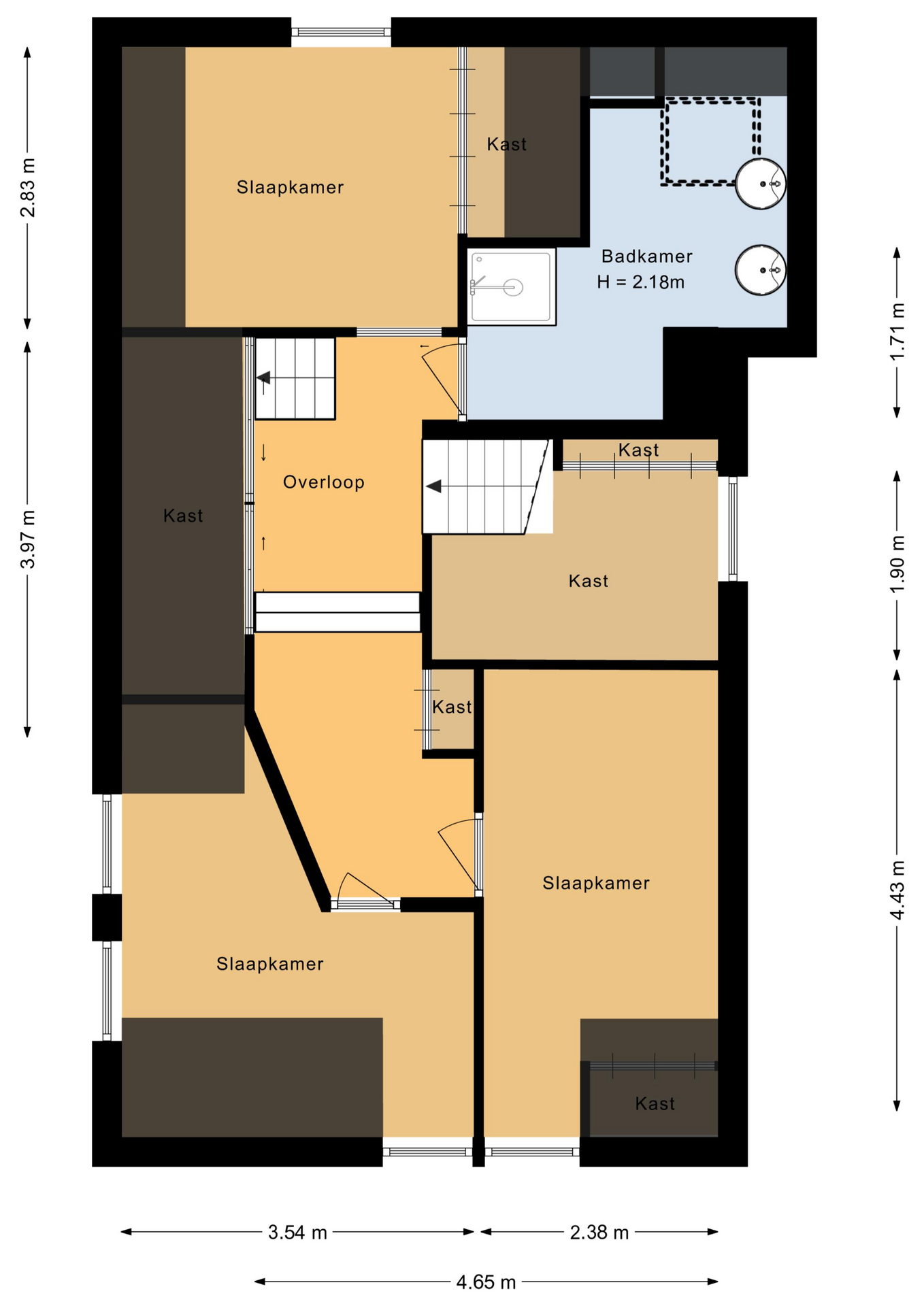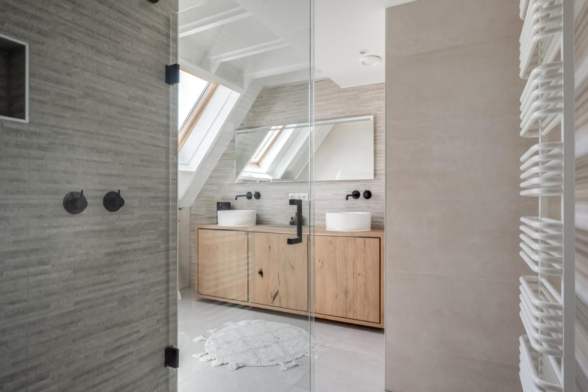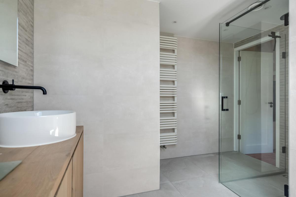 Eerste verdieping De overloop biedt toegang tot drie slaapkamers en de badkamer. Alle kamers beschikken over vaste kasten, zijn prettig van formaat en hebben veel natuurlijke lichtinval. De badkamer, vernieuwd in 2021, is modern ingericht met een inloopdouche, een dubbel wastafelmeubel, een tweede toilet en een designradiator. De afwerking is strak, fris en eigentijds.