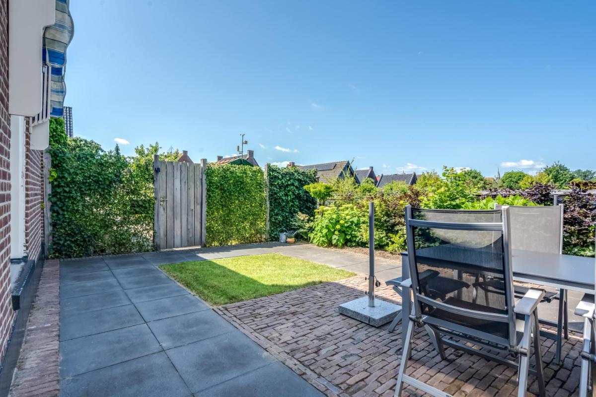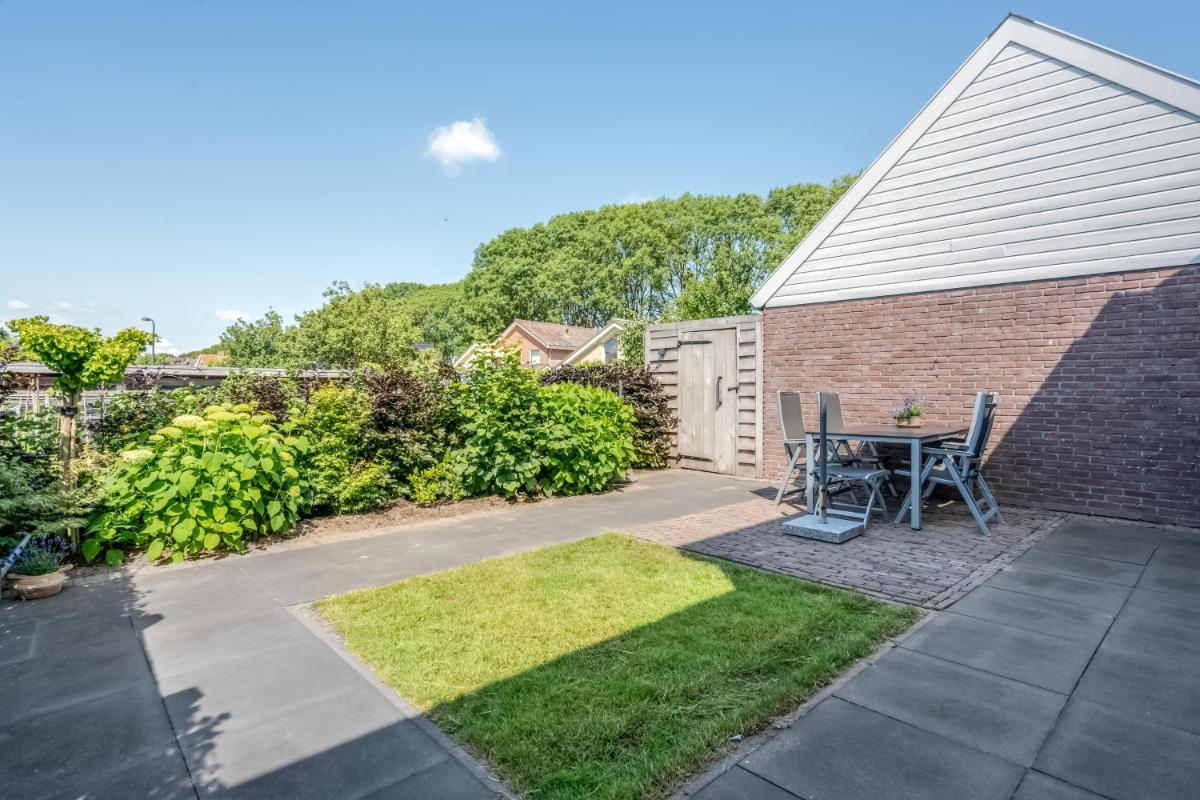 Buitenruimte De tuin is fraai aangelegd en vormt een rustige, groene plek midden in de oude kern van Vollenhove. De combinatie van sierbestrating, beplanting en buitenverlichting zorgt voor een verzorgde en sfeervolle uitstraling. Achter in de tuin staat een tuinhuis met werkbank, perfect als extra berging of hobbyruimte. De tuin is volledig omsloten, waardoor je veel privacy ervaart. Parkeren kan in de straat aan de achterzijde van de woning, gratis en zonder vergunning.