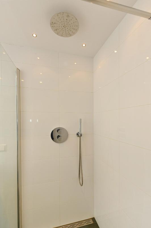 Layout: Enclosed entrance on the ground floor with a doorbell panel and mailboxes. Stairs lead to the third floor where the entrance to the apartment is located. A spacious hallway with ample space for a wardrobe and access to all rooms of the apartment. The living room is located at the front of the building and features a small southwest-facing balcony that catches the evening sun. At the rear are a smaller bedroom and a modern, semi-open kitchen with access to the large balcony, which enjoys the morning sun. An adjacent larger bedroom is currently being used as a study. The bathroom is also adjacent to the hall in the middle of the house and dates from 2015. Spacious walk-in shower, washbasin, toilet and towel radiator.