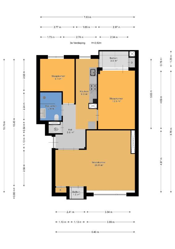 Indeling: Gesloten portiek op de begane grond met bellentableau en brievenbussen. Via de trap naar de derde verdieping waar de entree van de woning zich bevind. Ruime hal met voldoende ruimte voor een garderobe en toegang tot alle vertrekken van het appartement. De woonkamer is gesitueerd aan de voorzijde en heeft een klein balkon op het zuidwesten waar de avondzon op schijnt. Aan de achterzijde bevinden zich een kleinere slaapkamer, moderne half open keuken met toegang tot het grote balkon dat op de ochtend zon is gericht. En daarnaast een grotere slaapkamer, momenteel in gebruik als werkkamer. De badkamer grenst ook aan de hal in het midden van de woning en komt uit 2015. Ruime inloopdouche, wastafelmeubel, toilet en handdoekradiator.