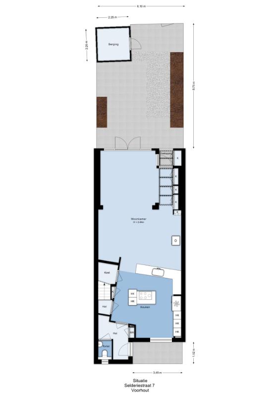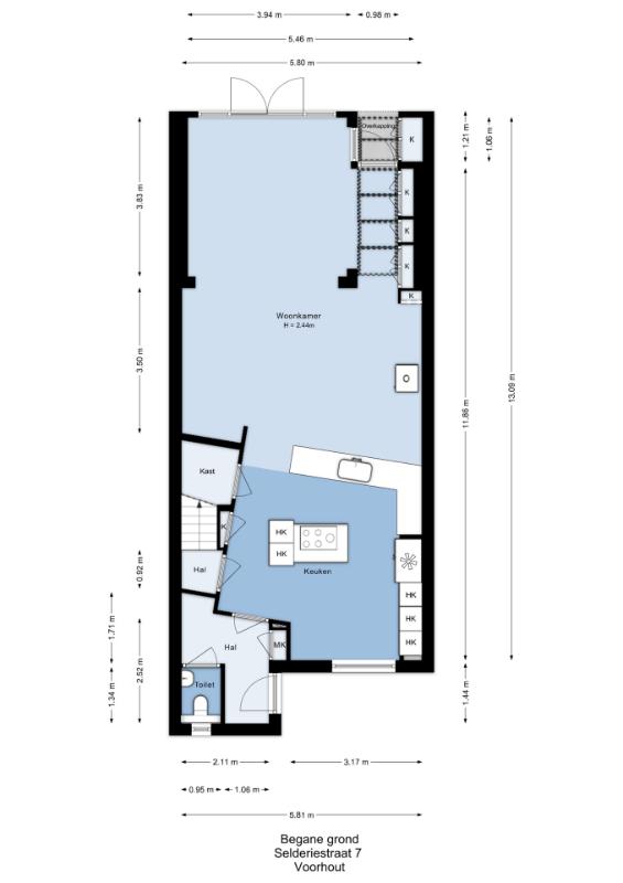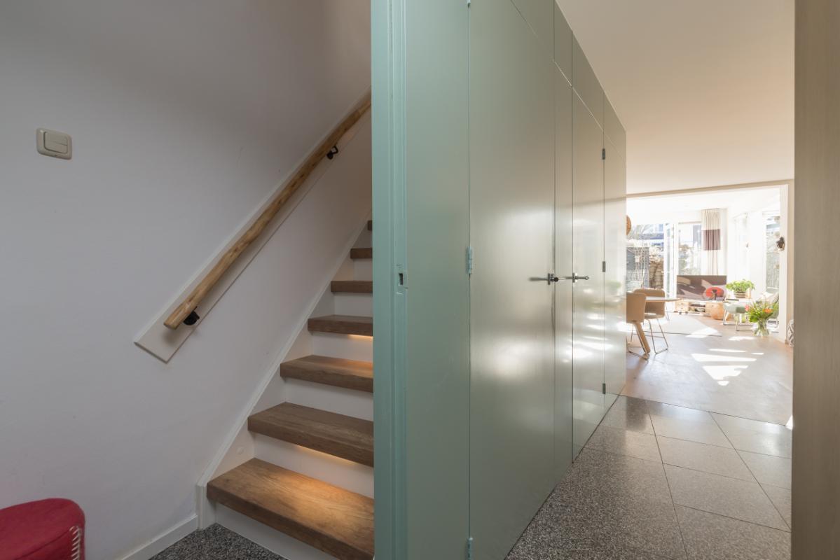 Indeling begane grond: Je komt binnen in de sfeervolle hal voorzien van toilet, meterkast (8 groepen + aardlek) en garderobe.