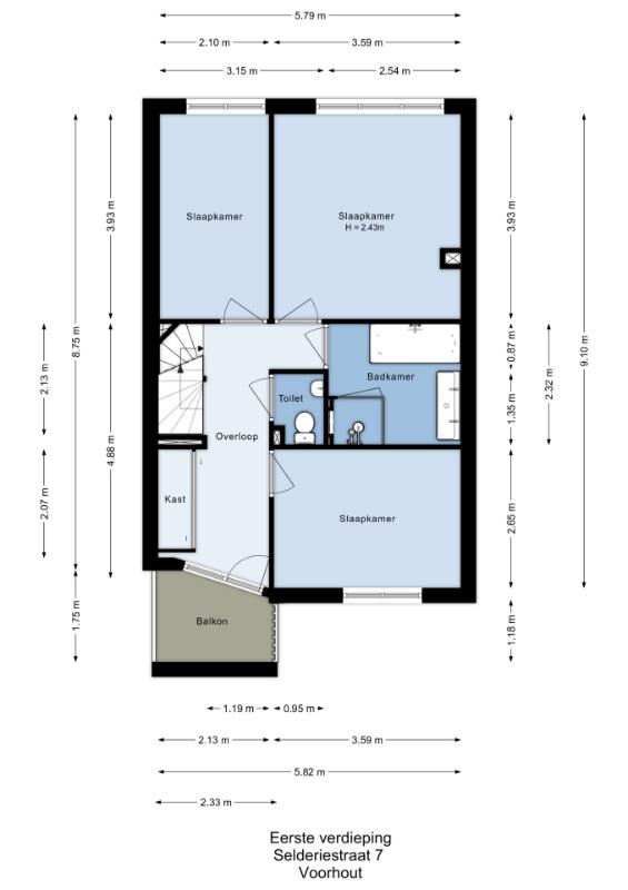 First Floor: Spacious landing with a convenient sliding wardrobe and a door to the north-facing balcony. At the front is a spacious bedroom. There is also a separate toilet on this floor.
