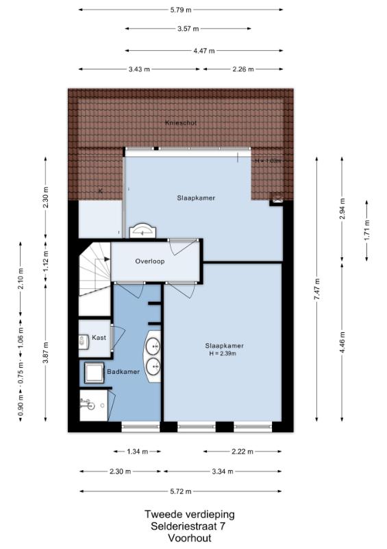 Second Floor: Landing. Spacious second bathroom (white/black) with a double vanity, shower, connections for the washing machine and dryer, and a cupboard housing the central heating boiler (Intergas, 2023) and water heater. A spacious fourth bedroom is at the front. A spacious fifth bedroom is at the rear and features a dormer window, a washbasin, and ample storage space in the sliding wardrobe and behind the knee wall.