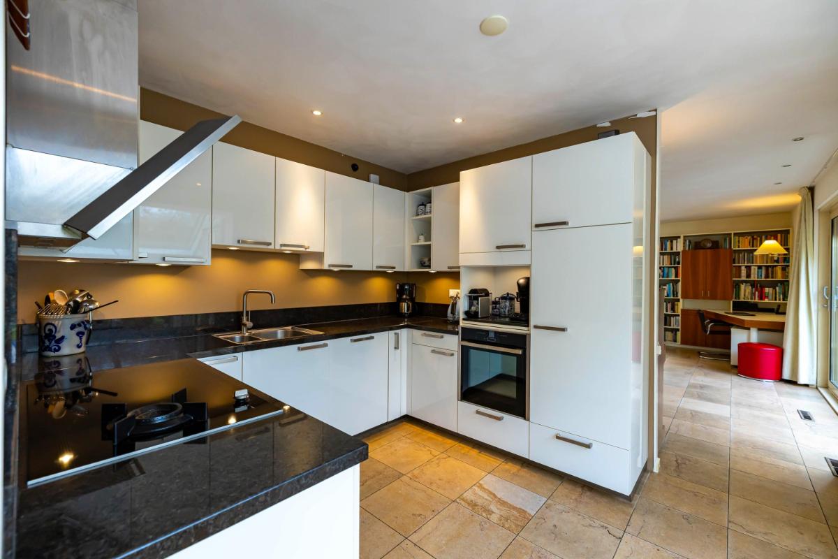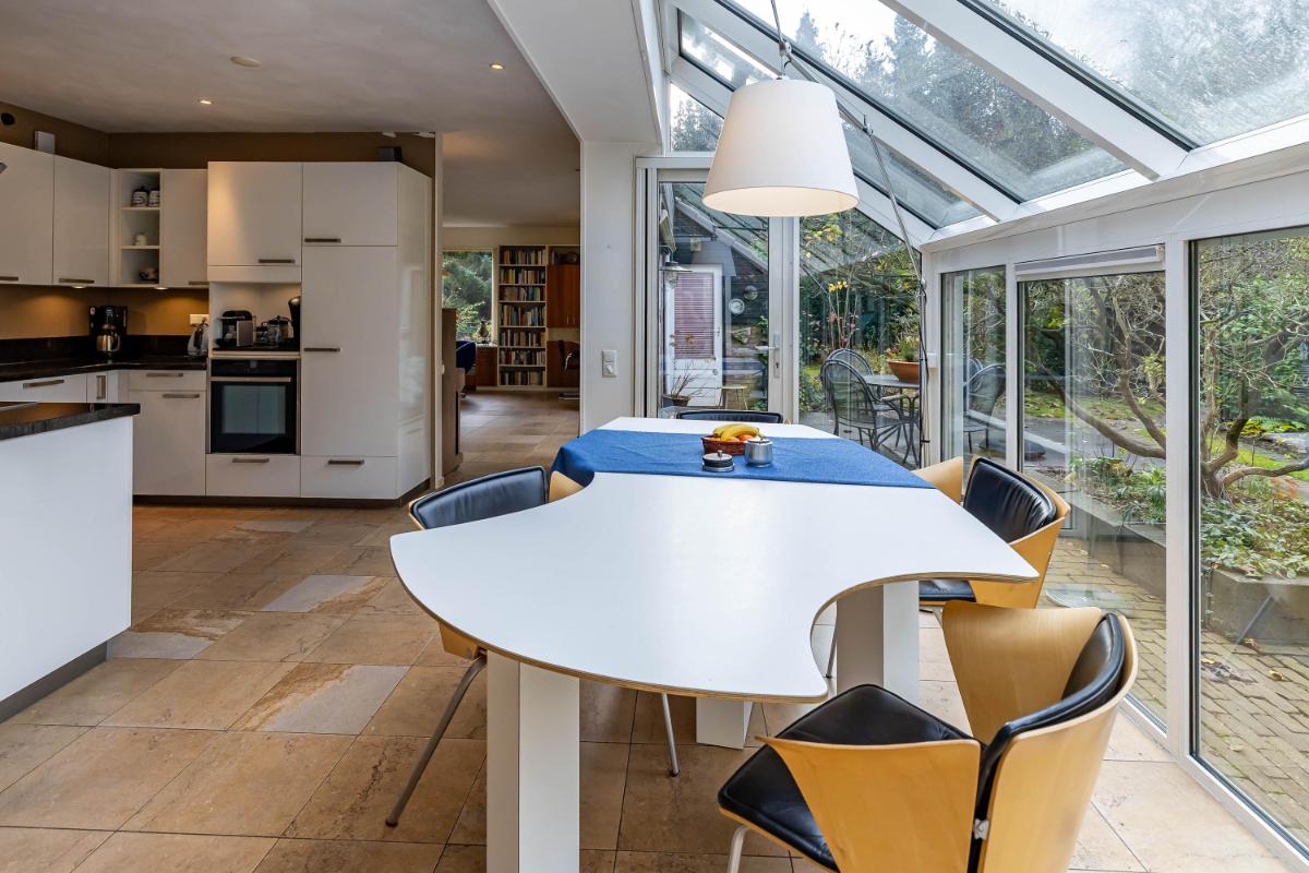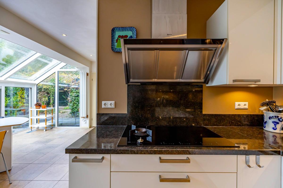 Deze verrassend ruime vrijstaande woning biedt alles voor wie comfortabel en stijlvol wil wonen in alle rust. Met maar liefst vier slaapkamers is dit huis ideaal voor een groot gezin, thuiswerkers, mantelzorg of een praktijk aan huis. De woning ligt uiterst rustig aan een doodlopende weg waar alleen fietsers passeren. Zodra je de oprit oprijdt, valt het royale perceel direct op: een sfeervolle, goed onderhouden woning omgeven door groen. Vanuit de ruime hal, met open trap naar de eerste verdieping, heb je toegang tot de woonkamer, badkamer, separate toiletruimte, een slaapkamer en bergruimte. De gehele begane grond is voorzien van een praktische plavuizenvloer. De lichte open keuken met uitzicht op de fraaie achtertuin vormt samen met de woonkamer het hart van het huis: een uitnodigende leefruimte waar koken, eten en ontspannen samenkomen. De woonkamer beschikt over een sfeervolle elektrische haard en brede schuifpui naar de tuin. De keuken is uitgerust met inbouwspots, een elektrische boiler en moderne inbouwapparatuur, waaronder een inductiekookplaat, afzuigkap, koelkast met vriesvak, vaatwasser en heteluchtoven. Aansluitend bevindt zich de royale serre die dankzij de grote glaspartij veel daglicht binnenlaat en een heerlijk binnen-buitengevoel creëert.