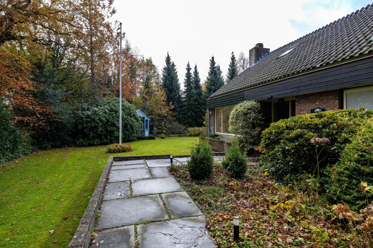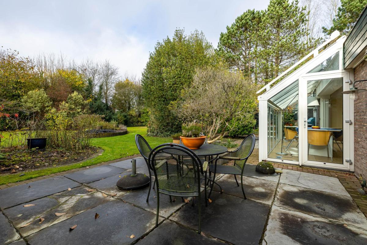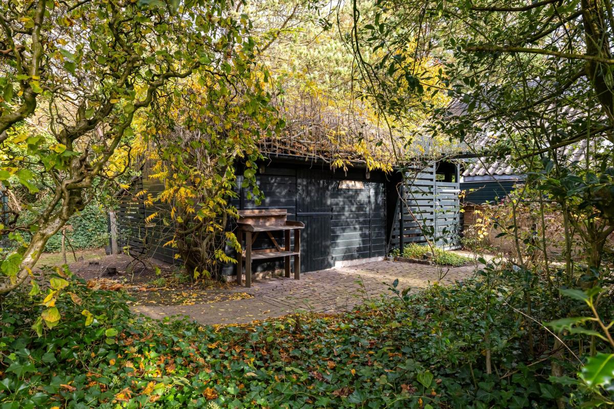 Rondom de woning ligt een fraai aangelegde, royale tuin, welke speciaal is ontworpen als onderhoudsarme tuin: een oase van rust en privacy. Hier is volop ruimte om te spelen, loungen, meerdere terrassen te creëren of te genieten van het buitenleven. Daarnaast zijn er twee bergingen, ideaal voor fietsen en tuingereedschap, en een gezellig tuinhuisje en een kas. In de bijkeuken bevinden zich de aansluitingen voor wasmachine en droger, netjes weggewerkt onder een praktisch werkblad met spoelbak. Ook vind je hier de hete-luchtketel van het merk Brink, bouwjaar 2003. De woning beschikt over twee carports, goed voor minimaal vier auto's. Ook het stallen van een caravan is hier geen enkel probleem.