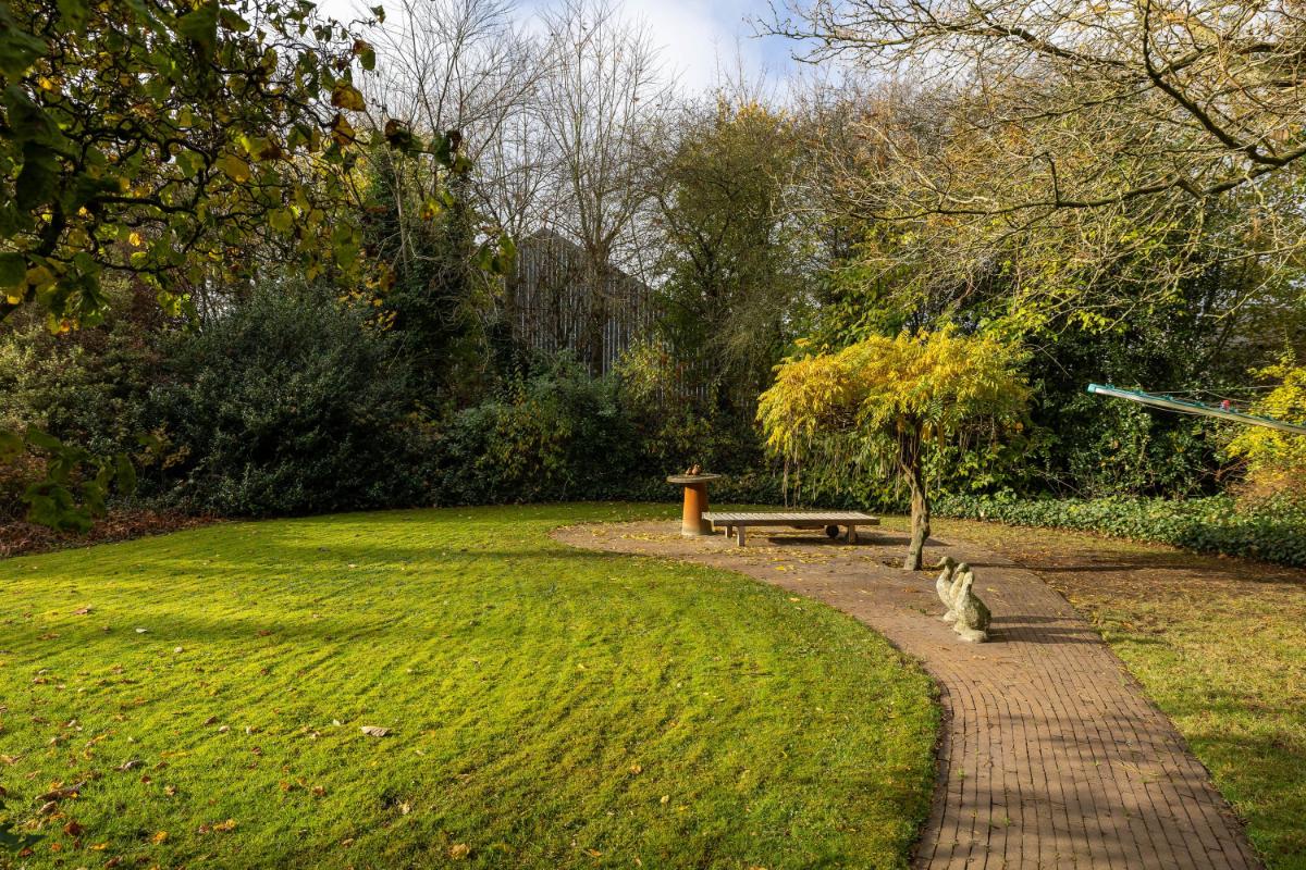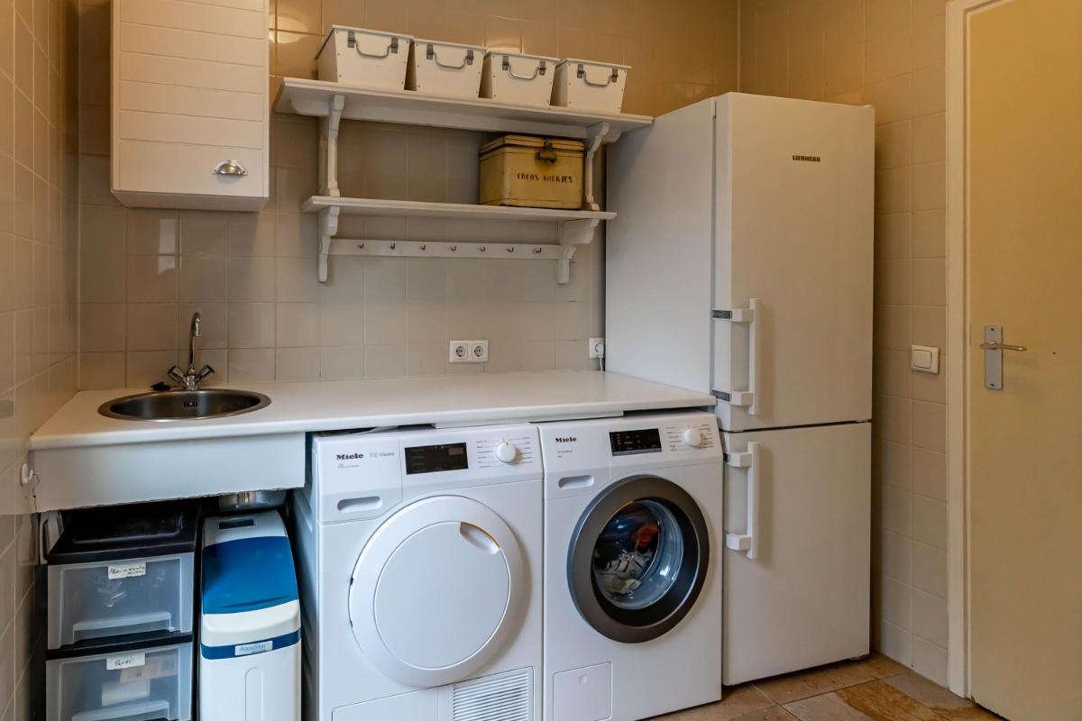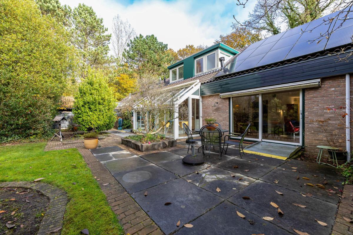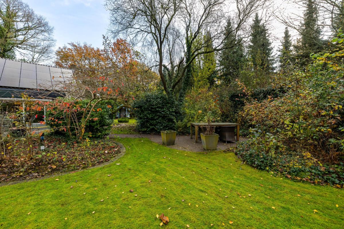Rondom de woning ligt een fraai aangelegde, royale tuin, welke speciaal is ontworpen als onderhoudsarme tuin: een oase van rust en privacy. Hier is volop ruimte om te spelen, loungen, meerdere terrassen te creëren of te genieten van het buitenleven. Daarnaast zijn er twee bergingen, ideaal voor fietsen en tuingereedschap, en een gezellig tuinhuisje en een kas. In de bijkeuken bevinden zich de aansluitingen voor wasmachine en droger, netjes weggewerkt onder een praktisch werkblad met spoelbak. Ook vind je hier de hete-luchtketel van het merk Brink, bouwjaar 2003. De woning beschikt over twee carports, goed voor minimaal vier auto's. Ook het stallen van een caravan is hier geen enkel probleem.