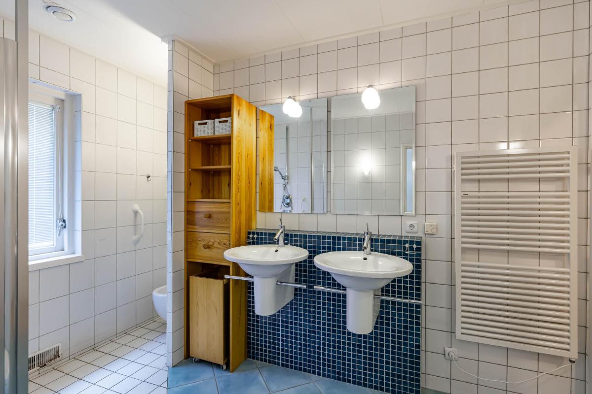 De woning is levensloopbestendig dankzij de slaapkamer van ca. 14 m² op de begane grond met directe toegang tot een zeer ruime badkamer. Tussen de woning en de overkapping bevindt zich de praktijkruimte. Deze is toegankelijk via een eigen entree én vanuit de hal van het woonhuis. De praktijkruimte bestaat uit een kleine wachtkamer, hal met toilet en een praktijkruimte van maar liefst 16,5 m² met een eigen eenvoudige badkamer en houtkachel. Perfect voor een extra slaapkamer, kantoor of praktijk aan huis, mantelzorg of een Bed & Breakfast. Boven de praktijk is nog een praktische bergzolder aanwezig waar de CV-ketel zich bevindt.