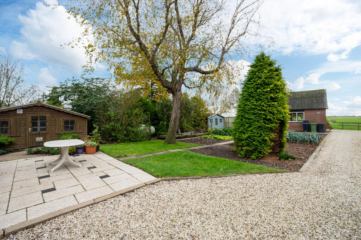 Vrijstaand woonhuis op een kavel van 1.170 m² eigen grond met daarop ook een ruime stenen garage/berging met flinke bergzolder en nog een paar kleinere houten schuren. Met zowel aan de voor- als achterzijde een bijzonder fraai vrij uitzicht over de landerijen.