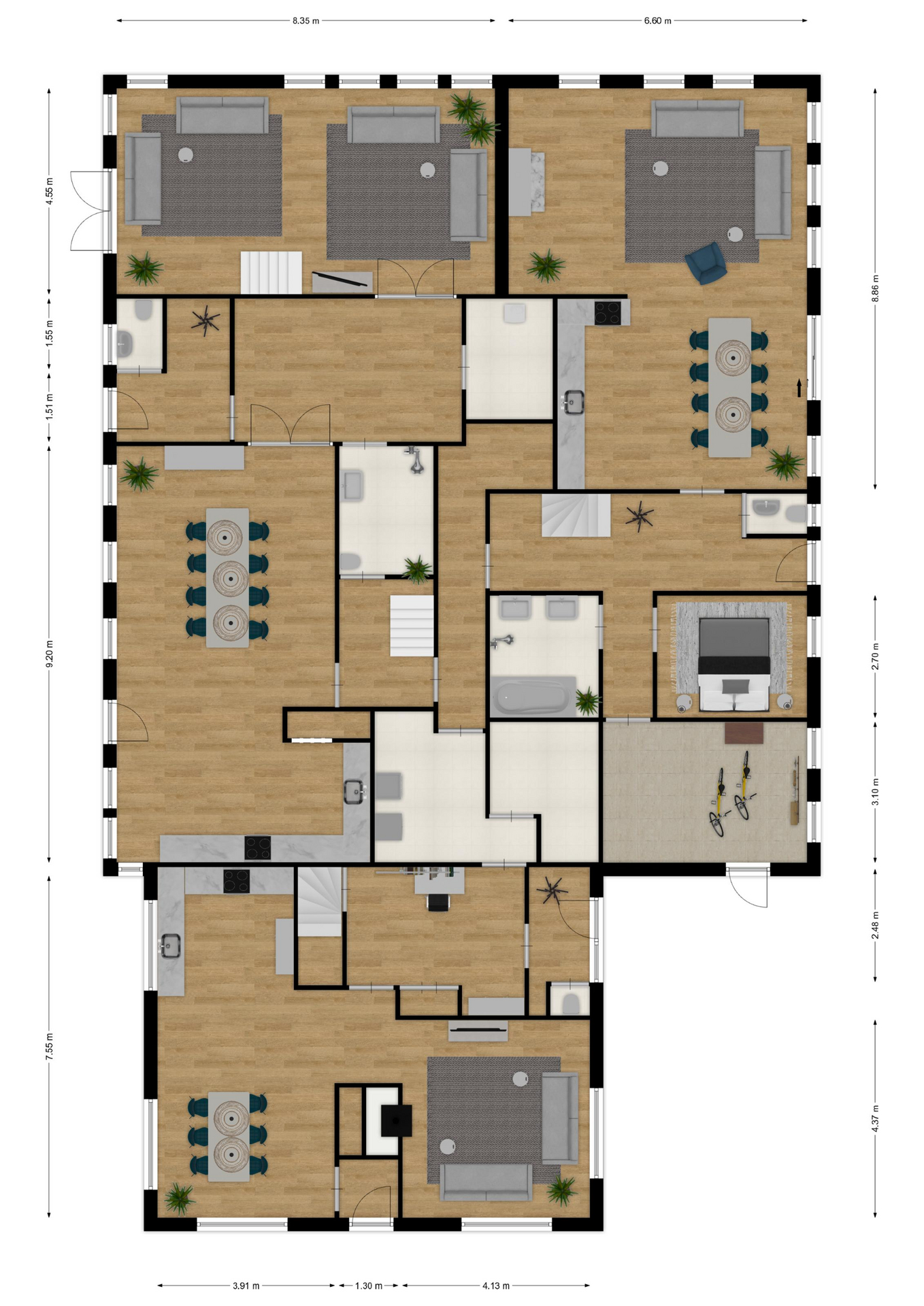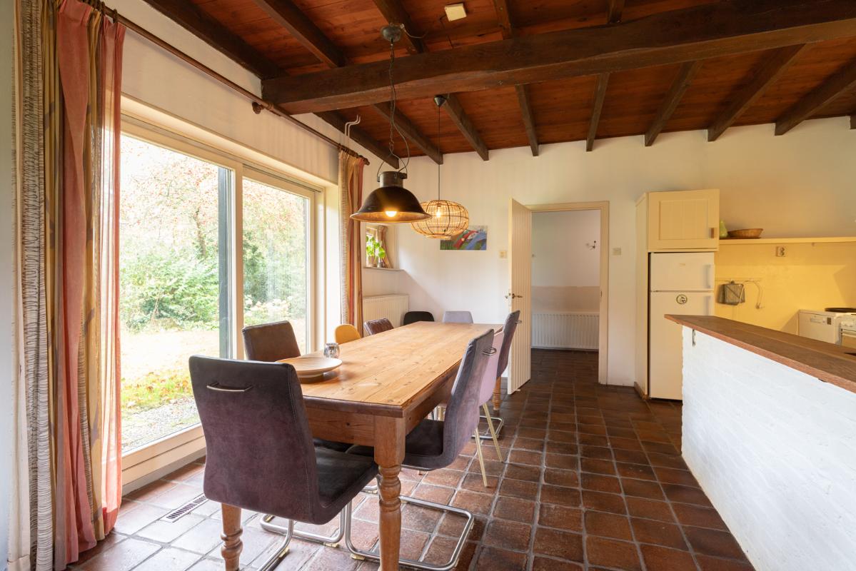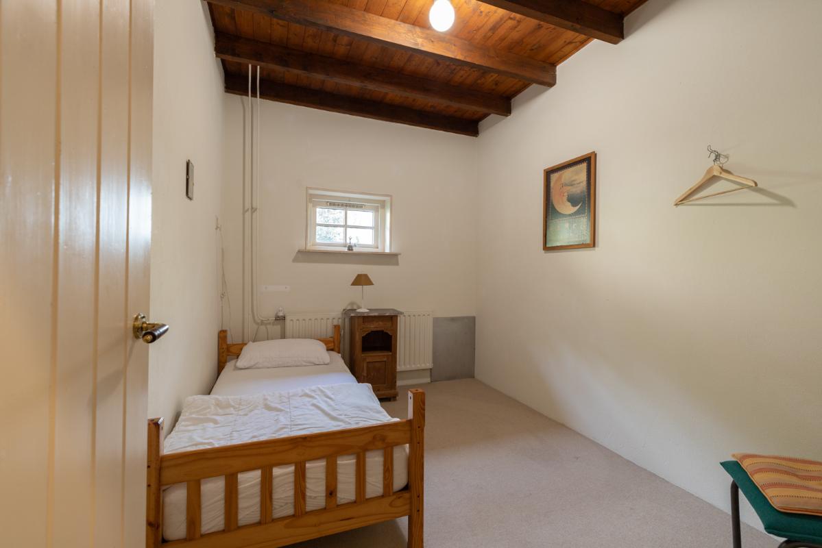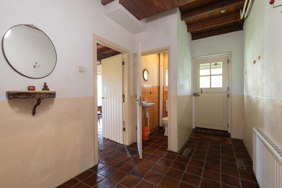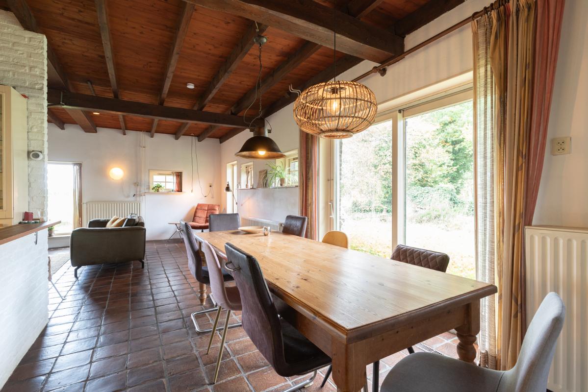 GROEPSACCOMMODATIE "De Stal" (8-16 personen): Begane grond: entree/hal met toilet; de centrale hal (met prachtige klinkervloer) geeft middels dubbele deuren toegang tot de woonkamer (ca. 38m²) met dubbele openslaande deuren naar de tuin en het terras. De zeer royale tuingerichte woonkeuken (ca. 45m²) heeft een nette keukeninrichting is voorzien van een groot fornuis en veel kast- en werkruimte. De badkamer op de begane grond heeft een douche, wastafelmeubel en wandcloset. Eerste verdieping: overloop; toilet, 2 doucheruimtes met wastafel en 6 slaapkamers (ca. 14, 13, 12, 10, 10 en 9m²).