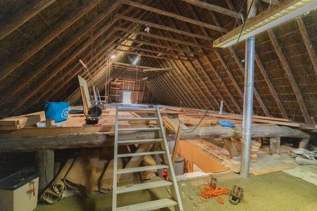 ZOLDER DEELRUIMTE: vanaf de tweede verdieping in het voorhuis is de grote zolder in de deelruimte toegankelijk (ca. 130m²). Deze ruimte zou nog functioneel ingedeeld kunnen worden.