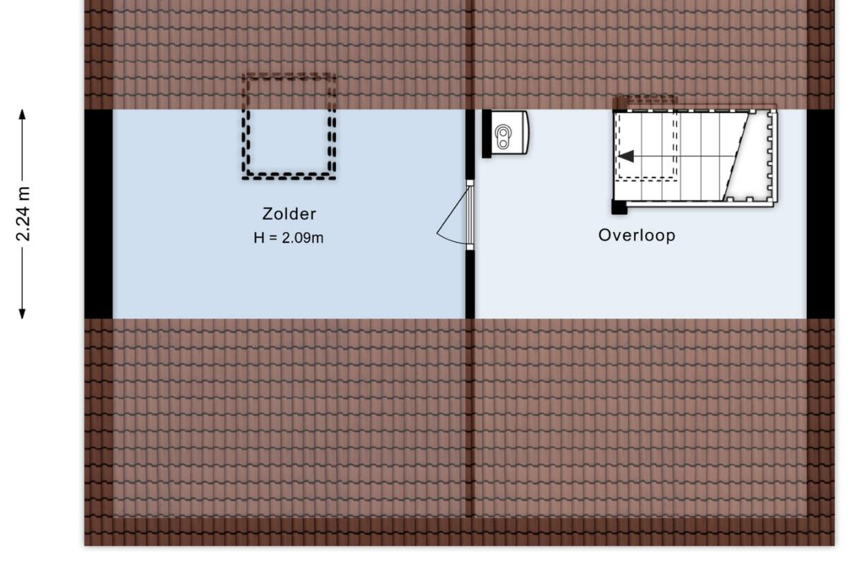 2e etage Ruime voorzolder met dakvenster en opstelling van de c.v.-combiketel (Nefit, ca 2022). Toegang tot de zolderkamer met dakvenster.