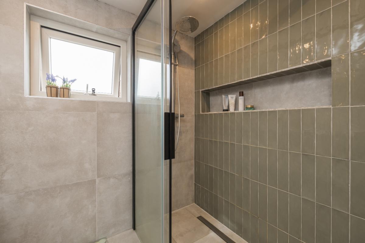 First floor The landing provides access to three spacious bedrooms. At the front is one bedroom with a washbasin. At the rear are two bedrooms, one of which has a built-in wardrobe. The modern bathroom is finished in attractive taupe tones and features a double washbasin unit, mirror cabinet, spacious walk-in shower and a toilet.