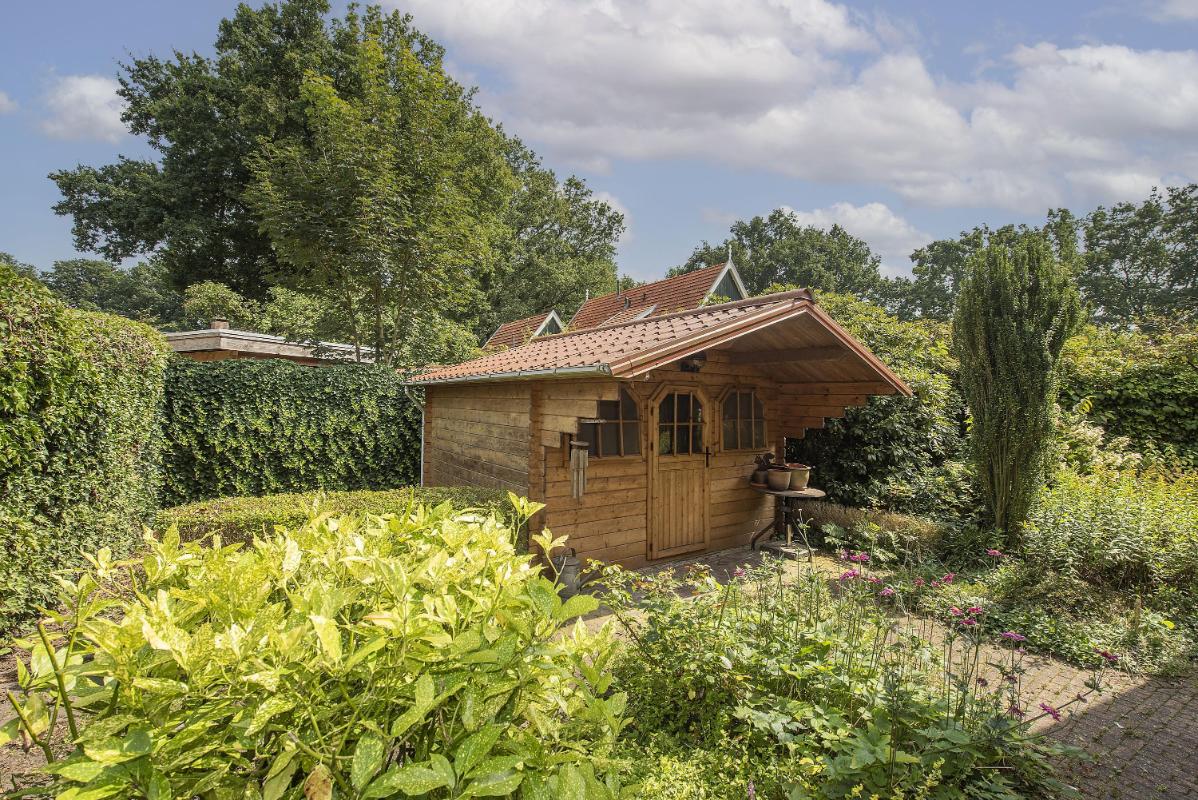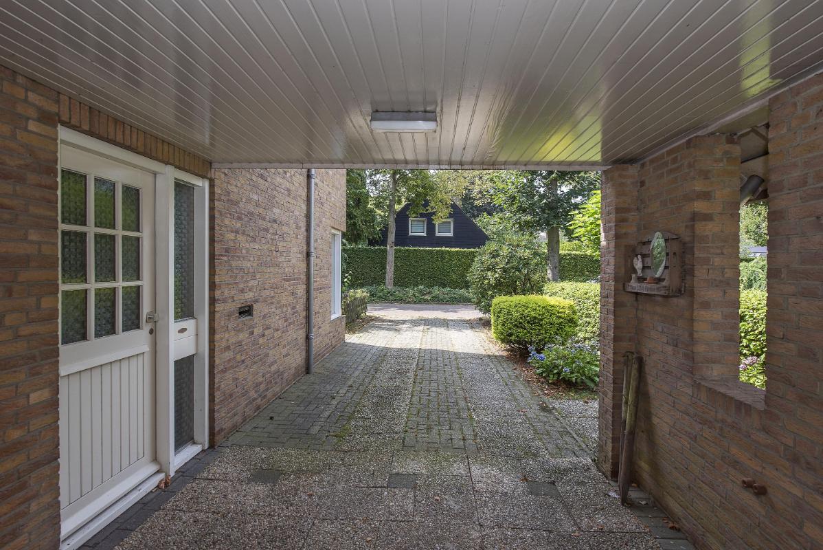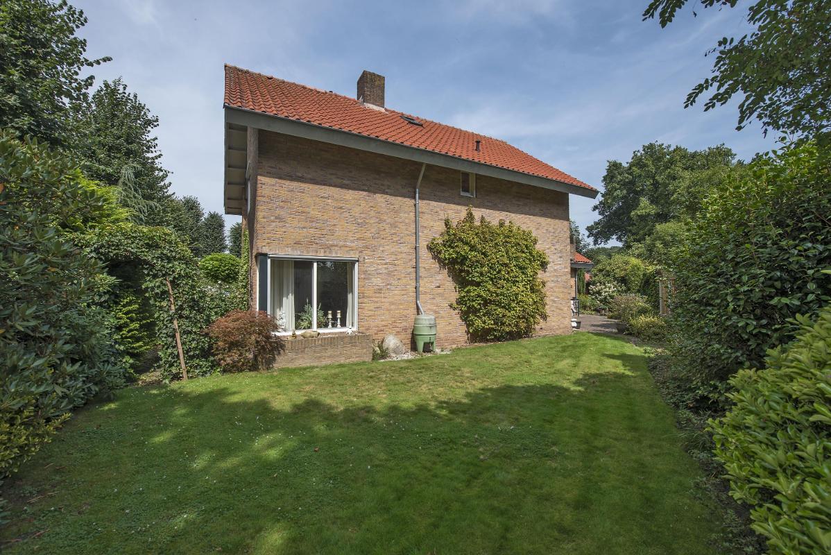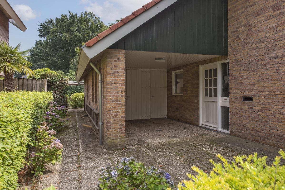 Indeling Begane grond: entree met trapopgang en meterkast, toilet, woonkamer met open haard en verhoogde eetkamer, halfopen keuken voorzien van kookplaat, afzuigkap, combi-oven, vaatwasser en koelkast, bijkeuken met wasmachineaansluiting en doorgang naar garage en carport. Eerste verdieping: overloop, vier slaapkamers, badkamer met ligbad, wastafel en toilet, twee balkons en een grote inpandige berging (te bereiken via de garage). Tweede verdieping: vaste trap naar ruime zolder met cv-opstelling en volop bergruimte. Buiten: groene tuin rondom met gazon, beplanting, terras, vrijstaande houten berging en volop privacy.