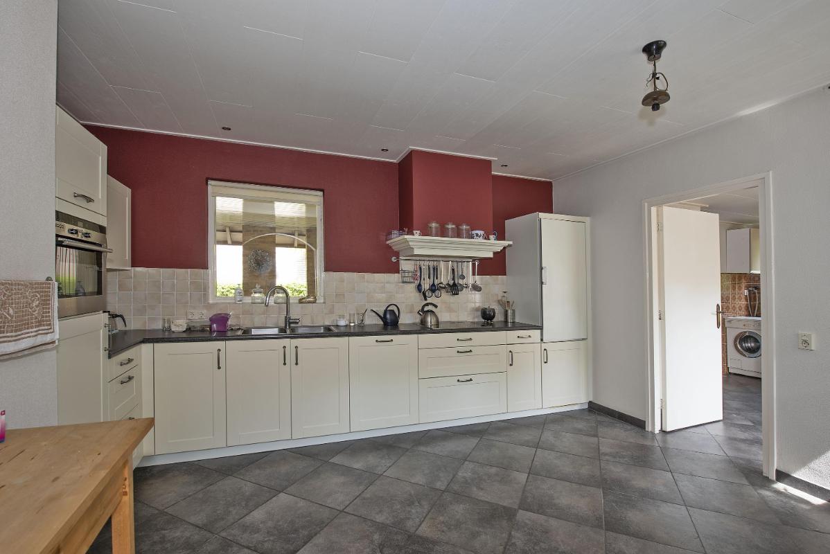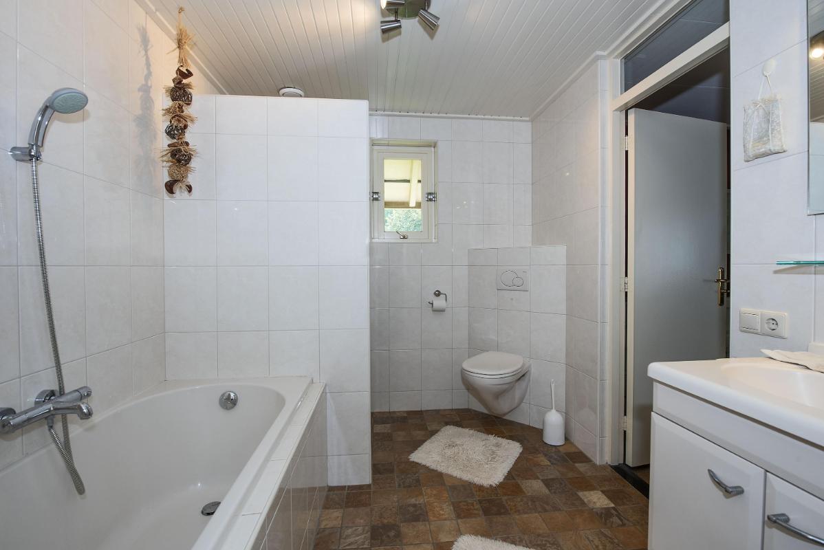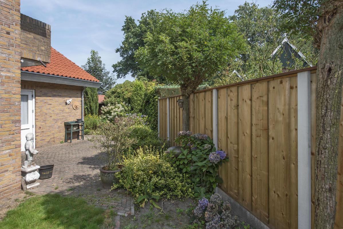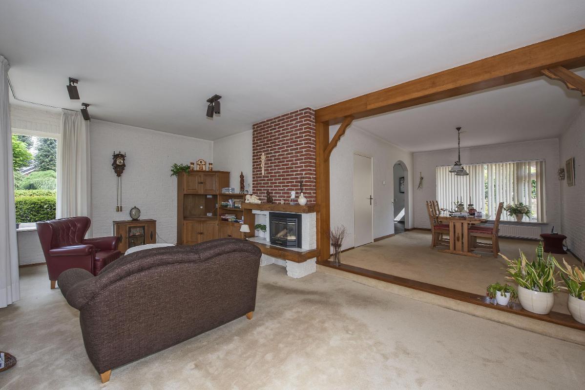 Indeling Begane grond: entree met trapopgang en meterkast, toilet, woonkamer met open haard en verhoogde eetkamer, halfopen keuken voorzien van kookplaat, afzuigkap, combi-oven, vaatwasser en koelkast, bijkeuken met wasmachineaansluiting en doorgang naar garage en carport. Eerste verdieping: overloop, vier slaapkamers, badkamer met ligbad, wastafel en toilet, twee balkons en een grote inpandige berging (te bereiken via de garage). Tweede verdieping: vaste trap naar ruime zolder met cv-opstelling en volop bergruimte. Buiten: groene tuin rondom met gazon, beplanting, terras, vrijstaande houten berging en volop privacy.