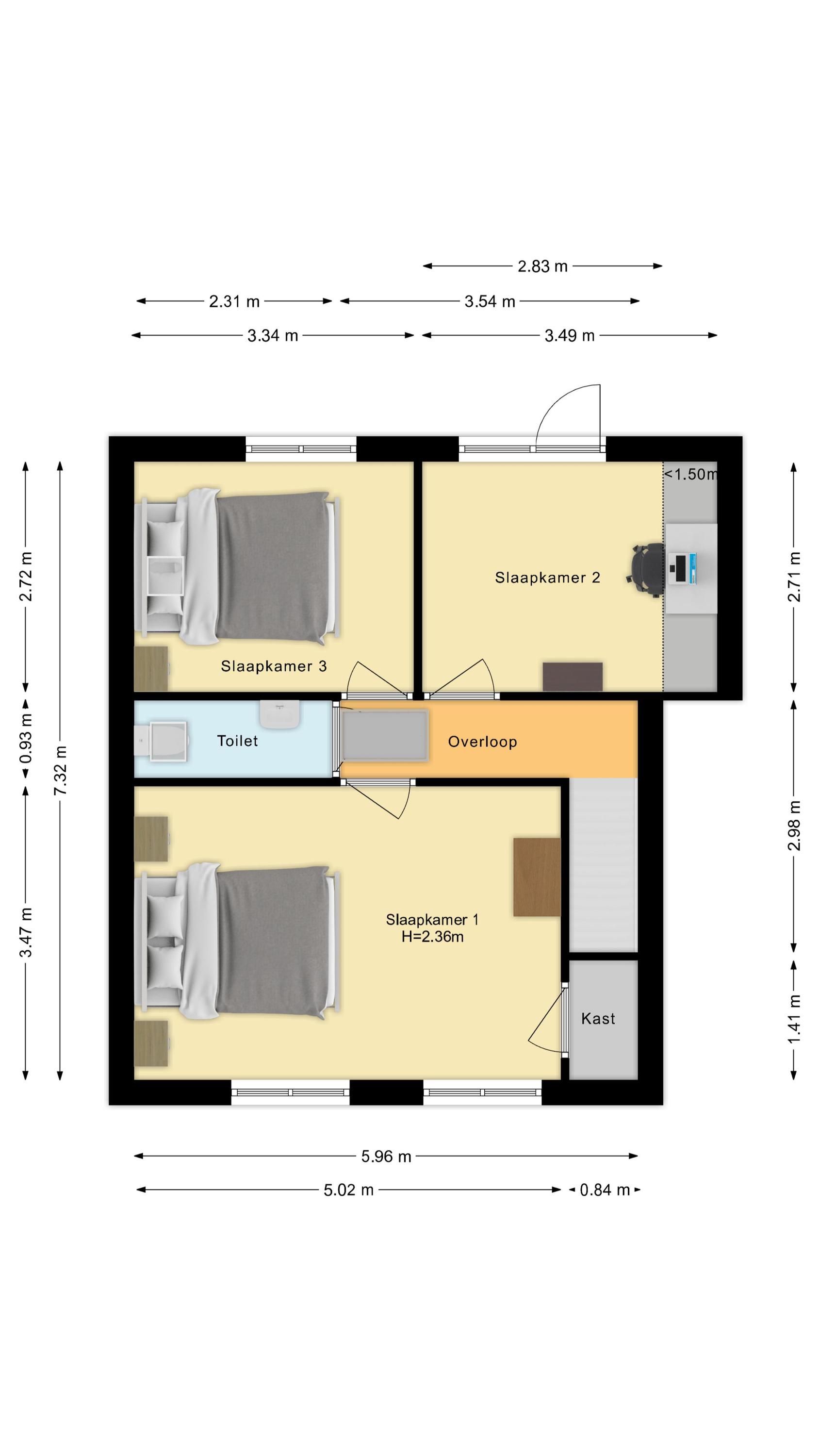 Drie slaapkamers, variërend in grootte. De kamers zijn geschikt als master bedroom, kinderkamer, logeerkamer of werkruimte. Dankzij de dakramen is er voldoende lichtinval.