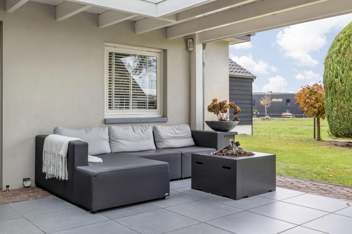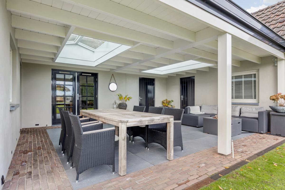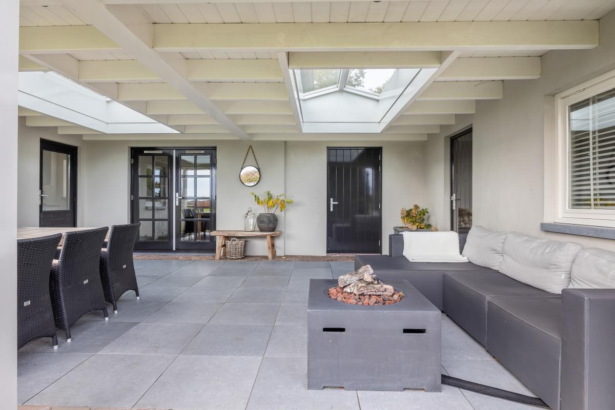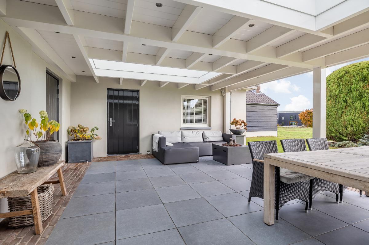 Een overkapping, direct grenzend aan de woning. Ideaal voor buiten zitten, ook bij minder mooi weer. Denk aan een loungeset, buitenkeuken of barbecueplek.