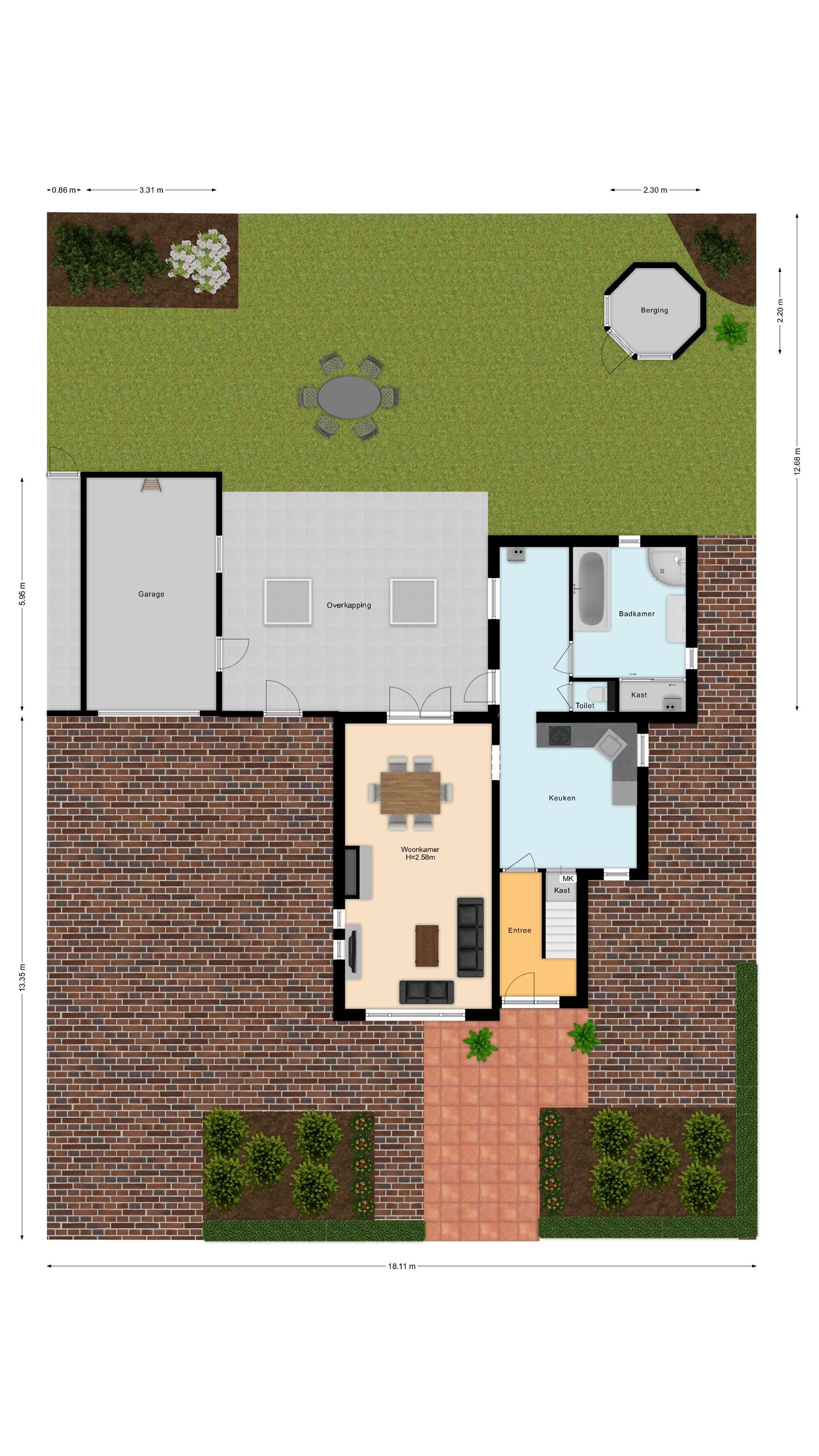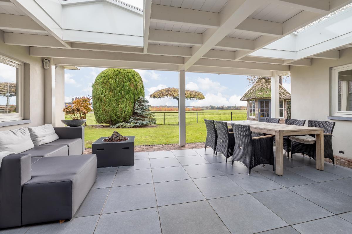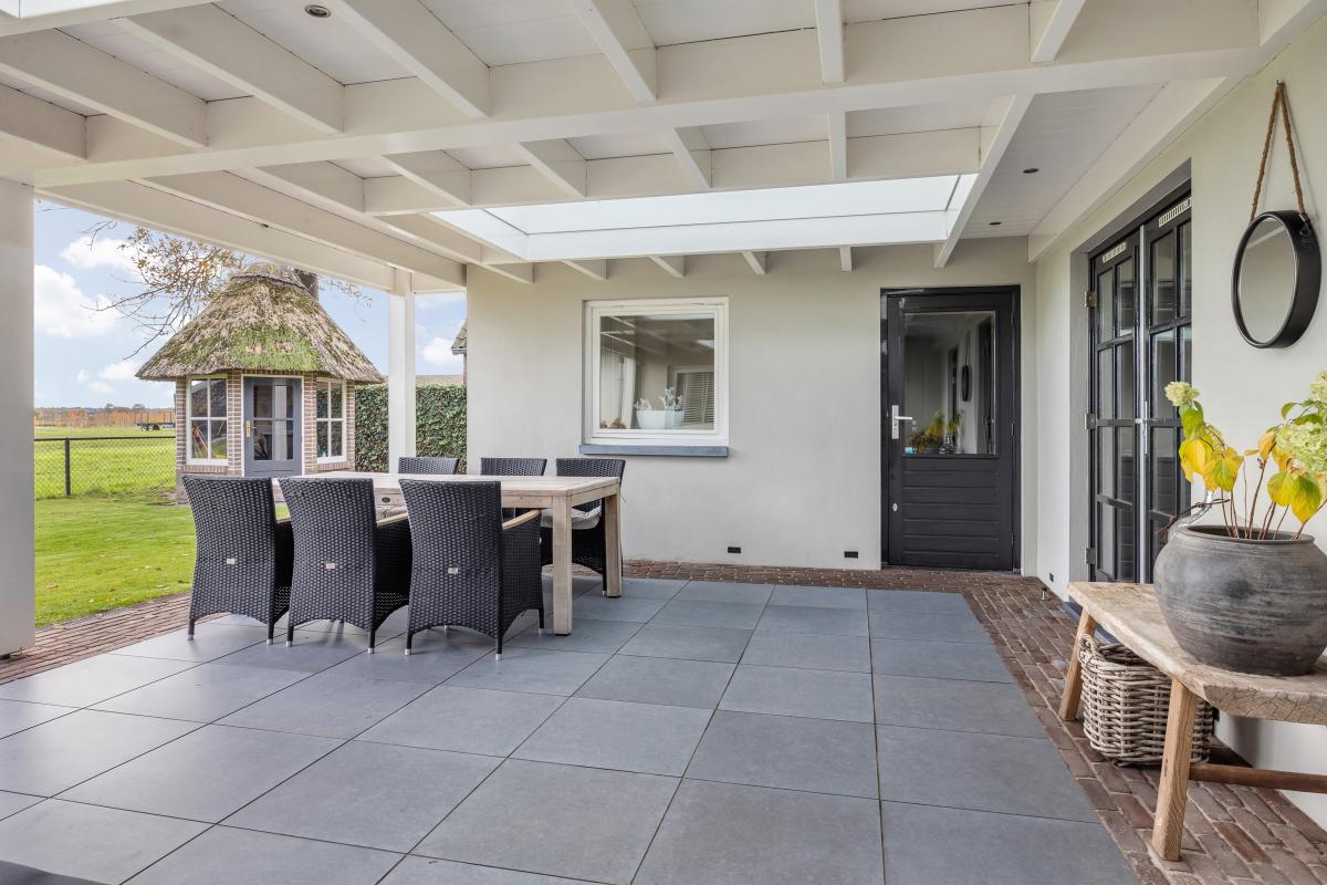 Een overkapping, direct grenzend aan de woning. Ideaal voor buiten zitten, ook bij minder mooi weer. Denk aan een loungeset, buitenkeuken of barbecueplek.