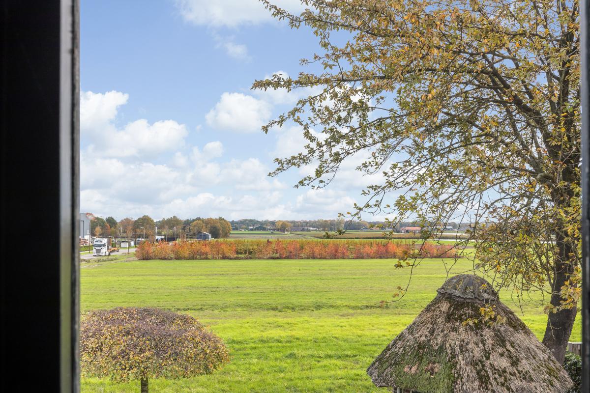 Een diepe achtertuin met vrij uitzicht over de landerijen. Een plek om tot rust te komen, te tuinieren of te genieten van het buitenleven.