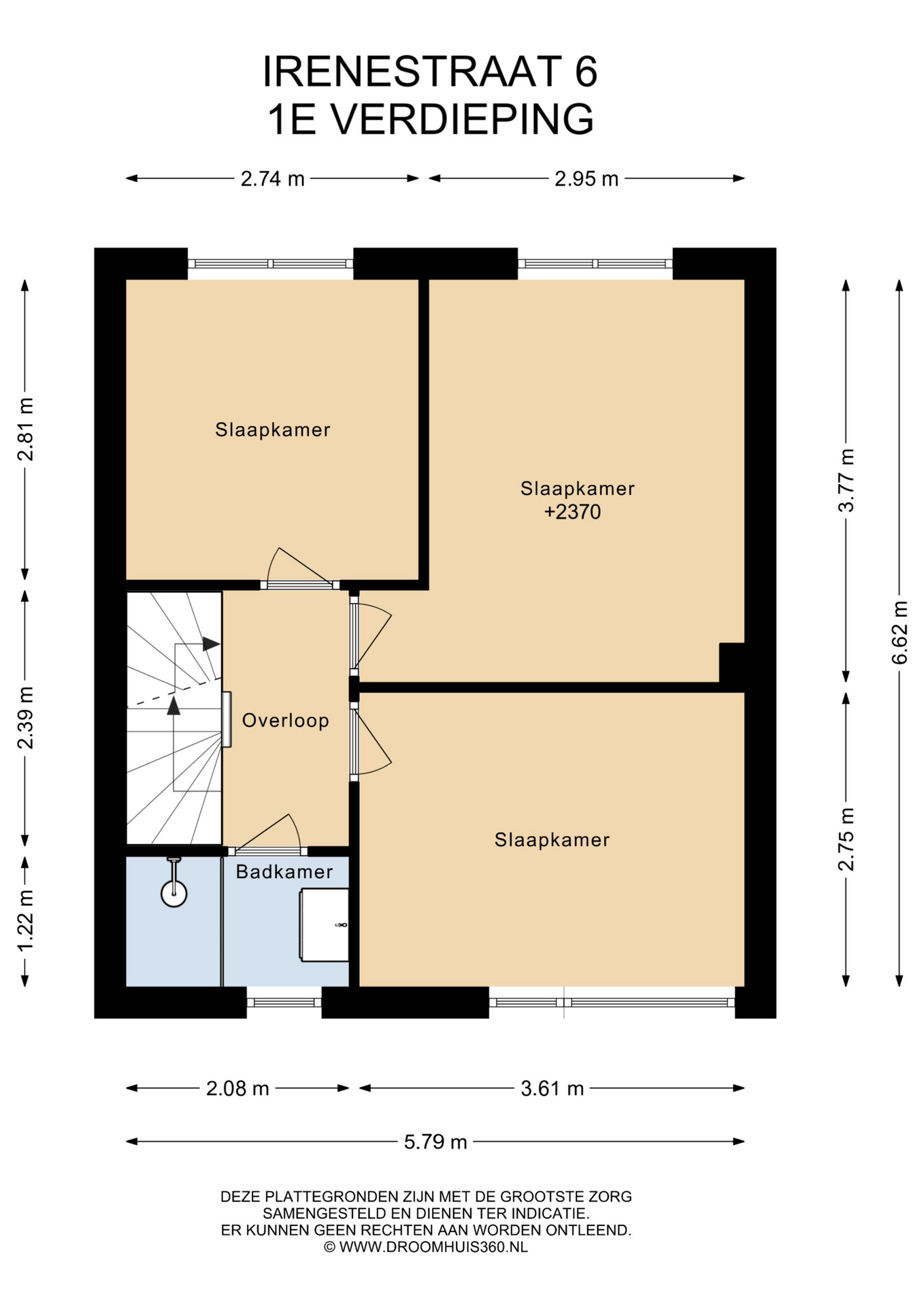 Op de eerste verdieping bevinden zich drie slaapkamers en de badkamer (2017) met douche en wastafel.