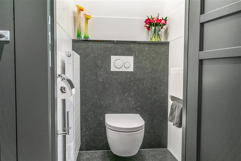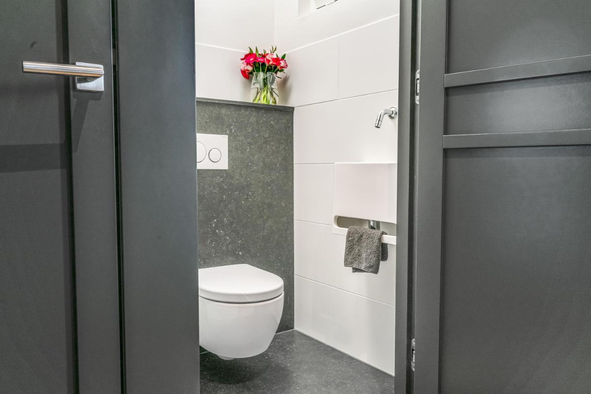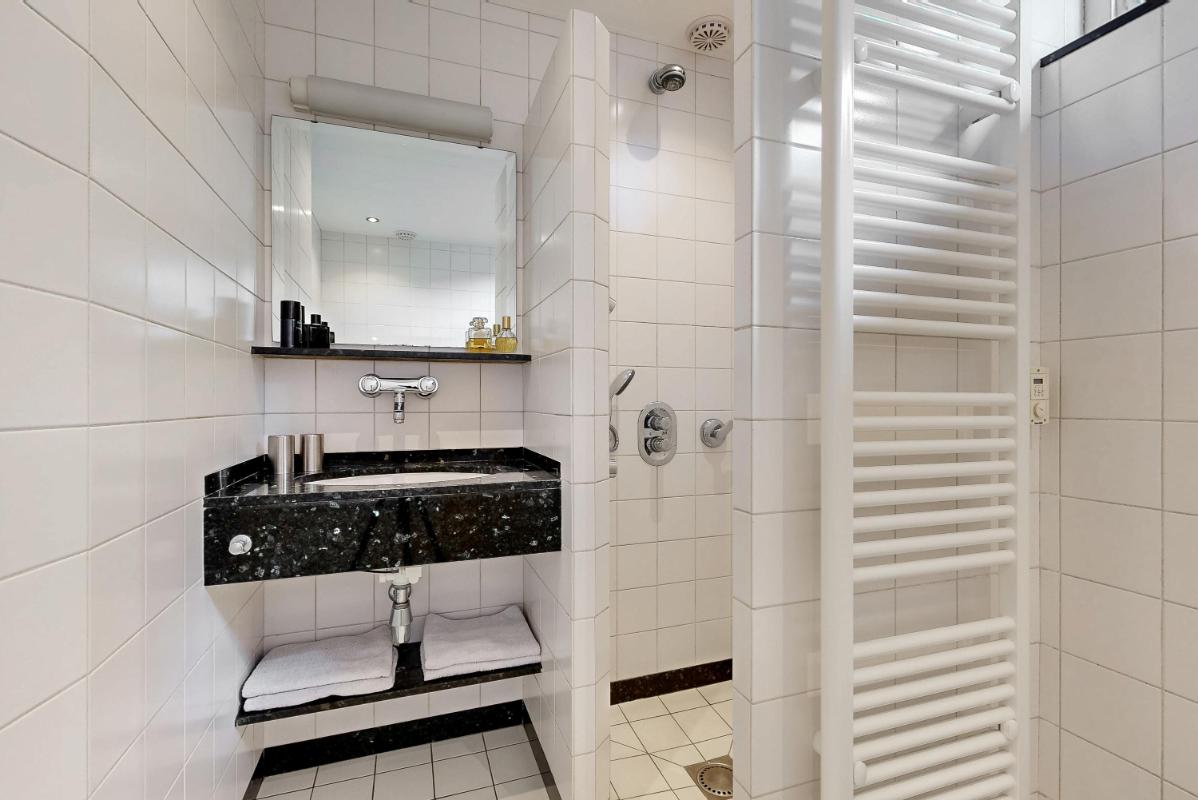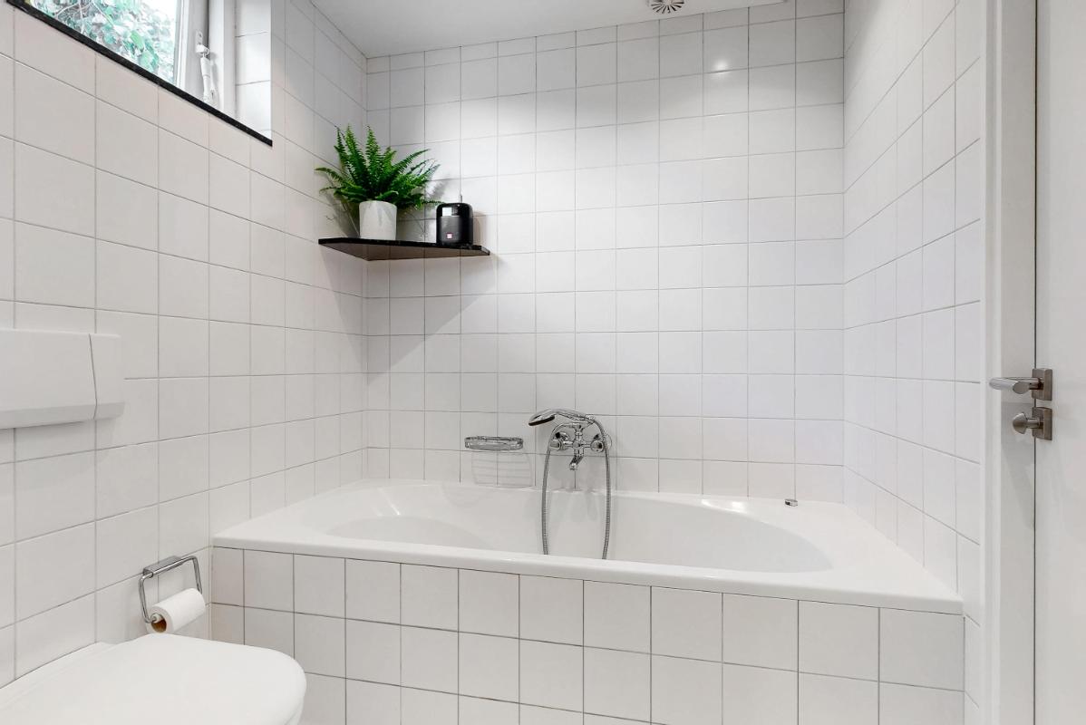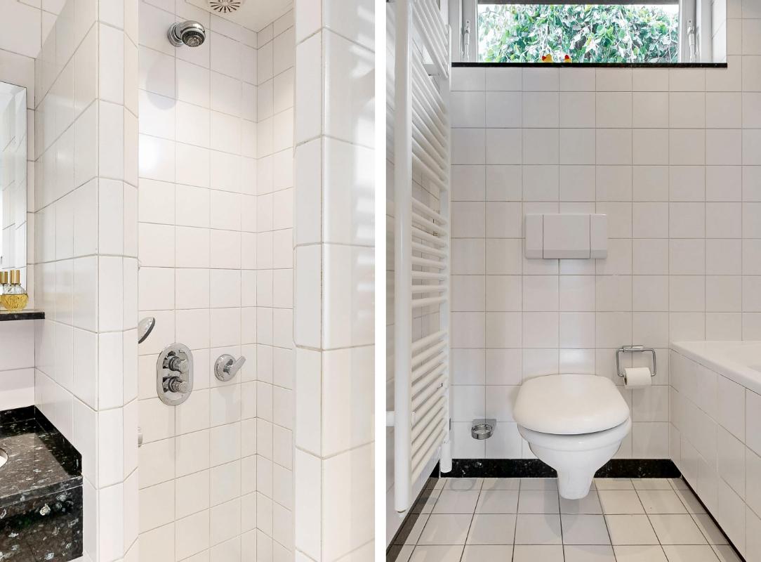 Op de eerste verdieping treft u een ruime overloop met toegang tot drie riante werk- of slaapkamers. Eén van de kamers is uitgerust met een vaste kastenwand en airconditioning, de slaapkamer aan de voorzijde beschikt over elektrische zonwering. De badkamer is volledig ingericht met een ligbad, inloopdouche, wastafel, toilet, designradiator en vloerverwarming.