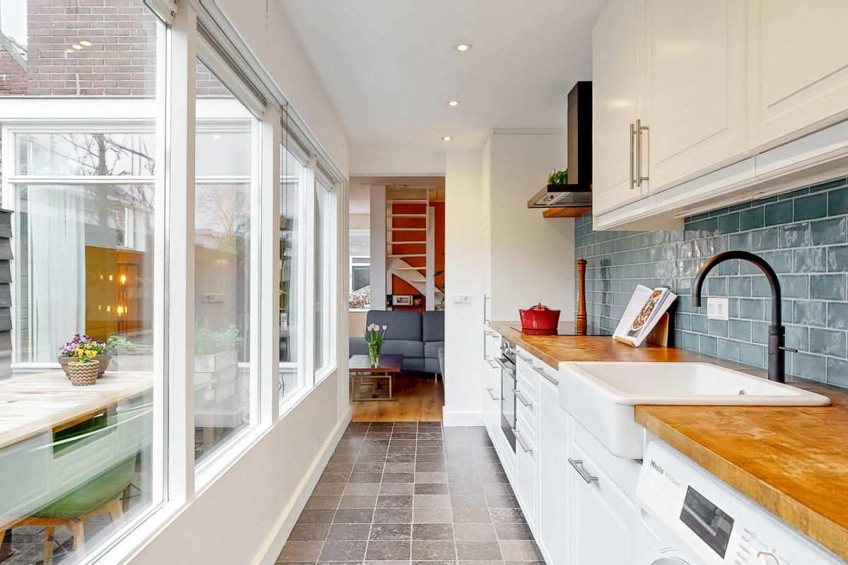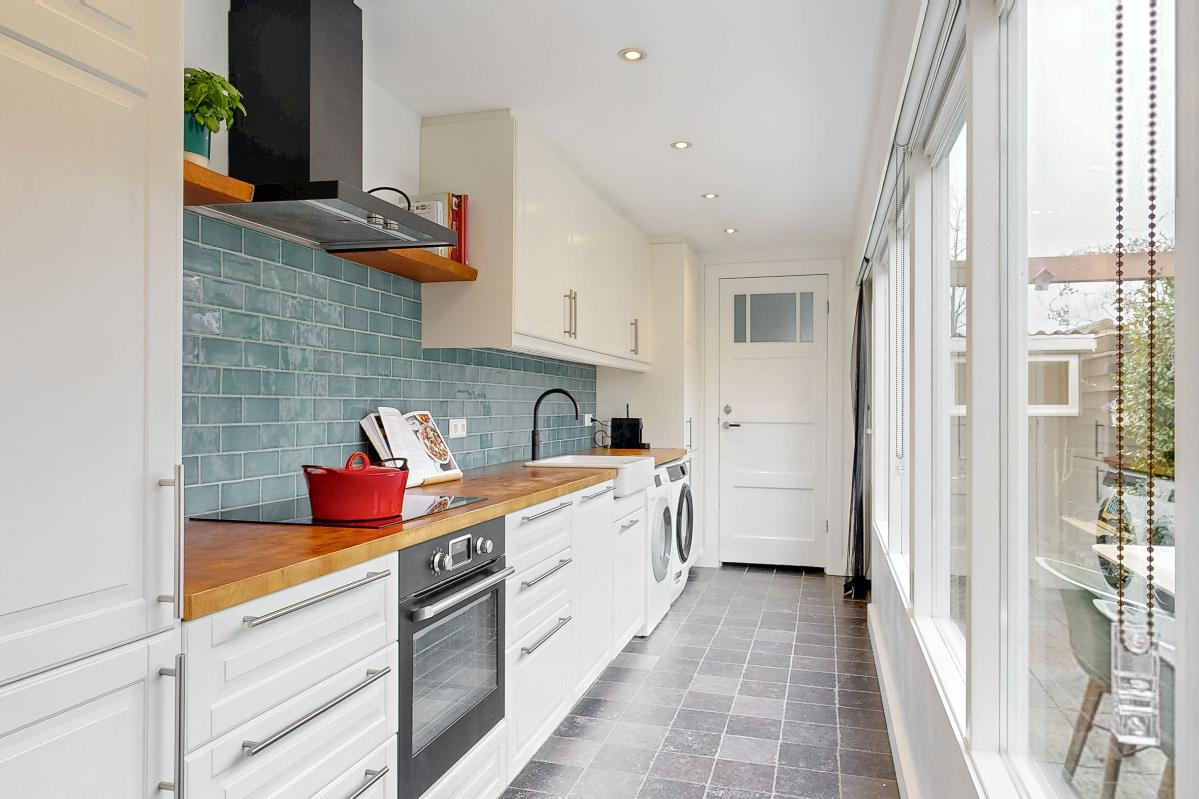 De keuken is vernieuwd in 2018 en praktisch ingericht. Je beschikt hier over diverse inbouwapparatuur, waaronder een koelkast, vriezer, oven, vaatwasser, Quooker en een 4-pits inductiekookplaat met afzuigkap. De ramen zorgen voor prettig daglicht tijdens het koken. Vanuit de keuken bereik je het toilet met fonteintje en de achtertuin.