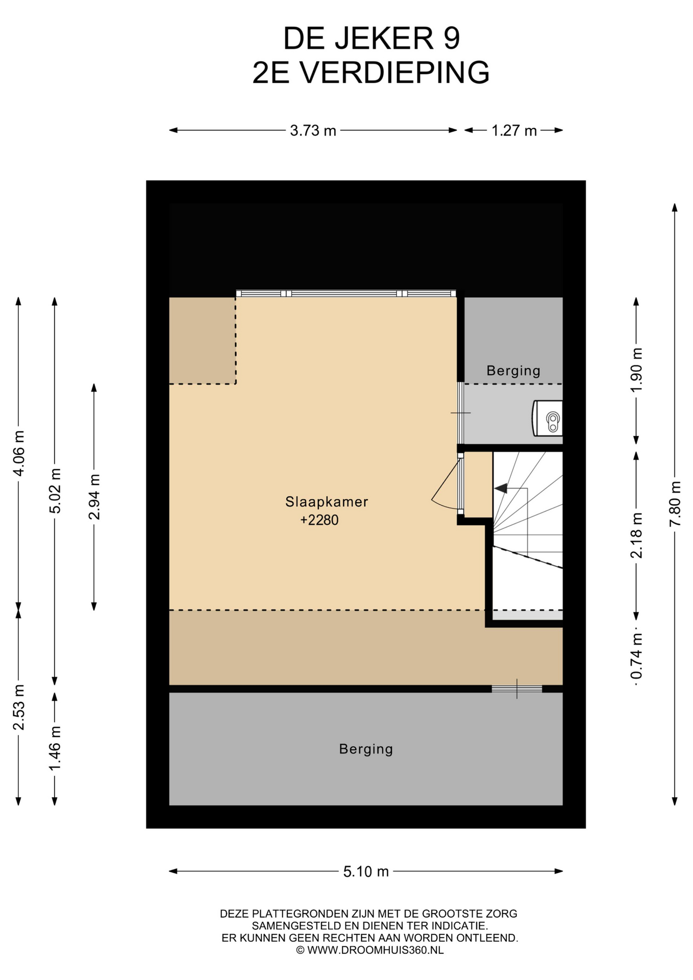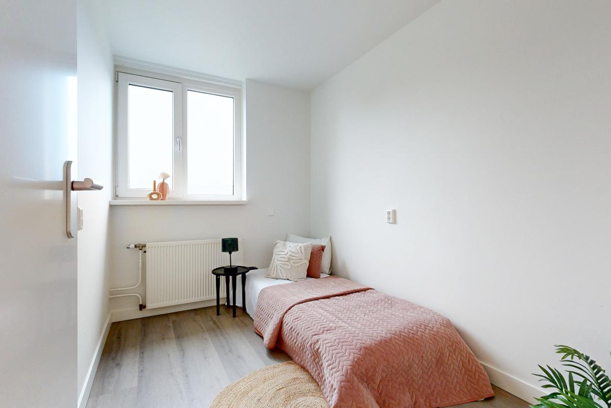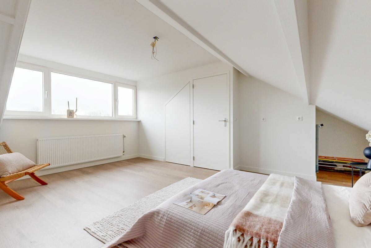 Via een vaste trap bereik je de tweede verdieping, eveneens met een pvc-vloer. Hier bevindt zich de vierde slaapkamer met een dakkapel voorzien van een elektrisch rolluik en een wastafel met meubel. Op deze verdieping is daarnaast praktische bergruimte aanwezig.