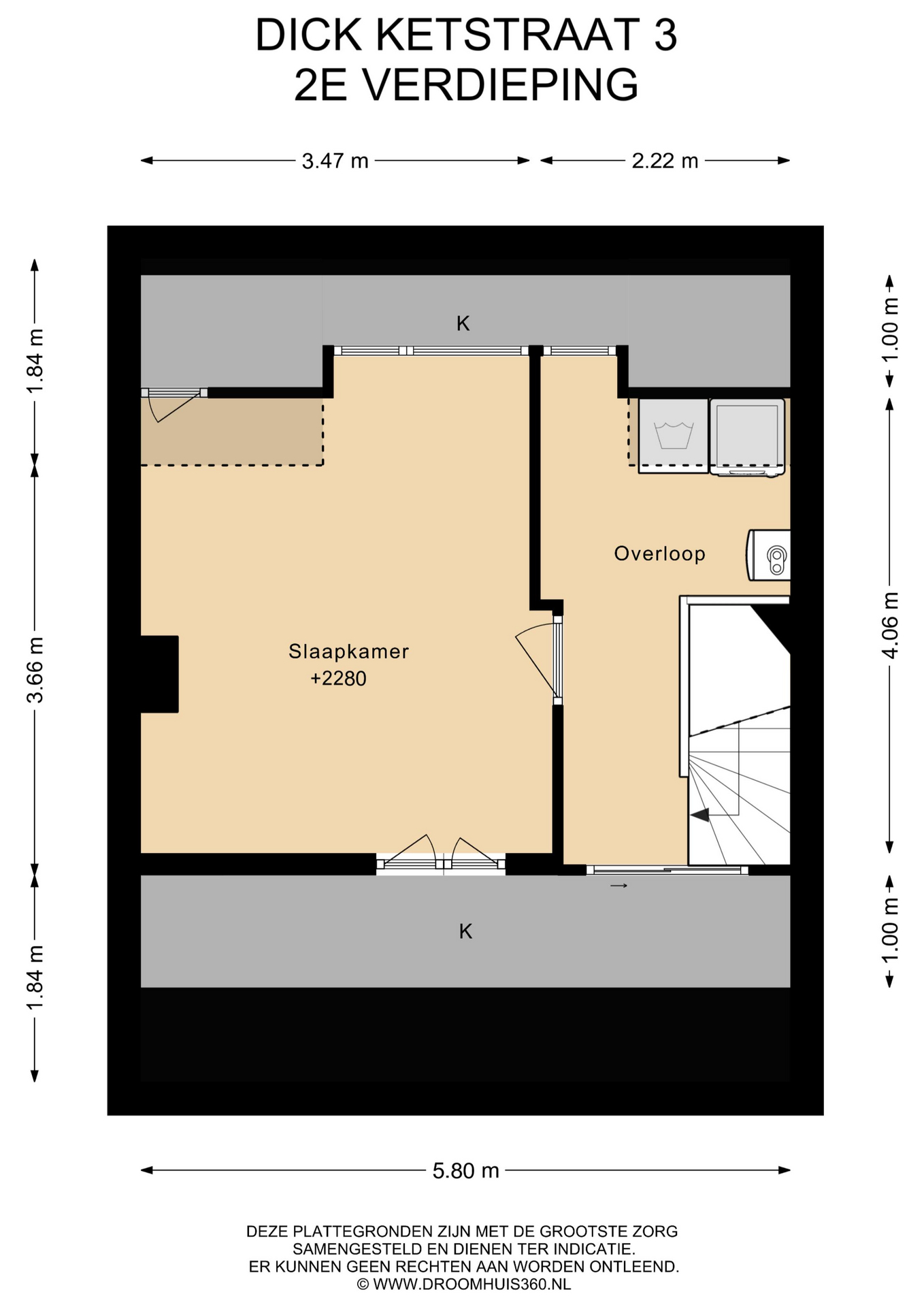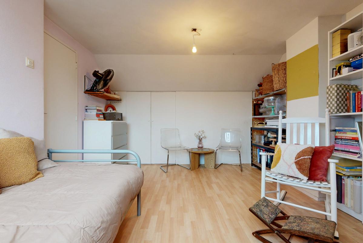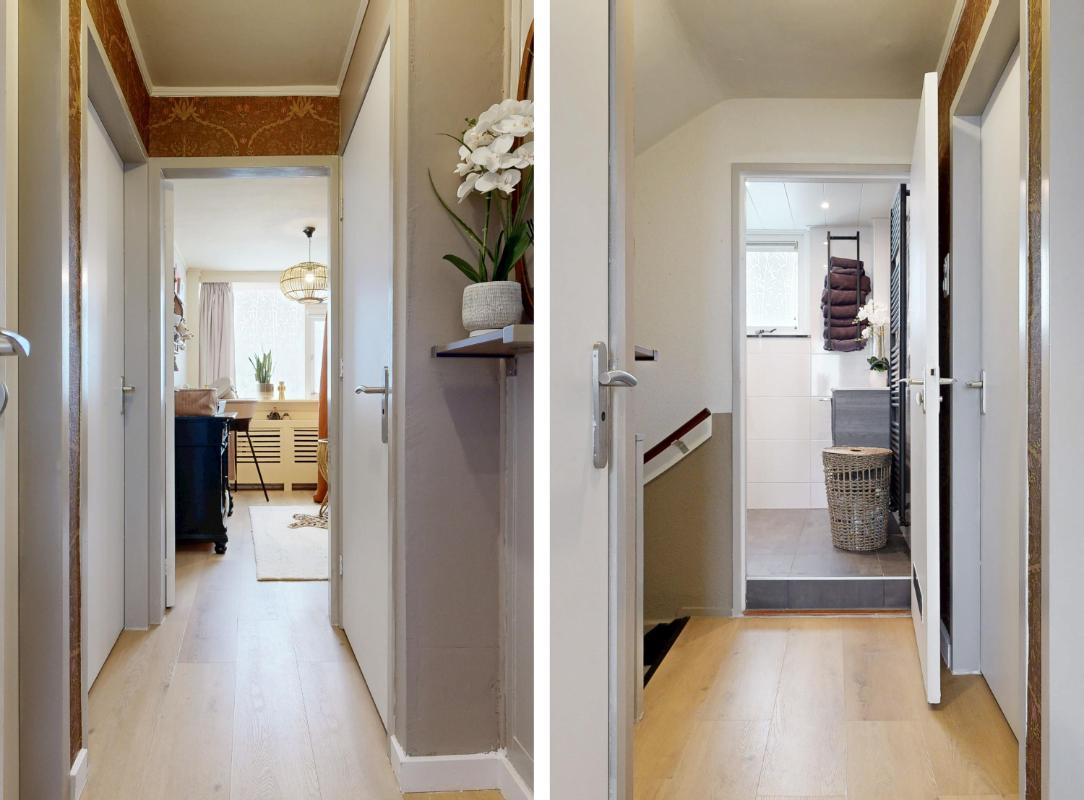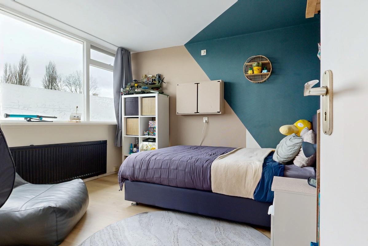 De tweede verdieping biedt een ruime overloop met witgoedaansluiting, cv-ketel en extra bergruimte. Daarnaast bevindt zich hier een vierde slaapkamer met dakkapel en praktische opbergruimte achter de knieschotten.