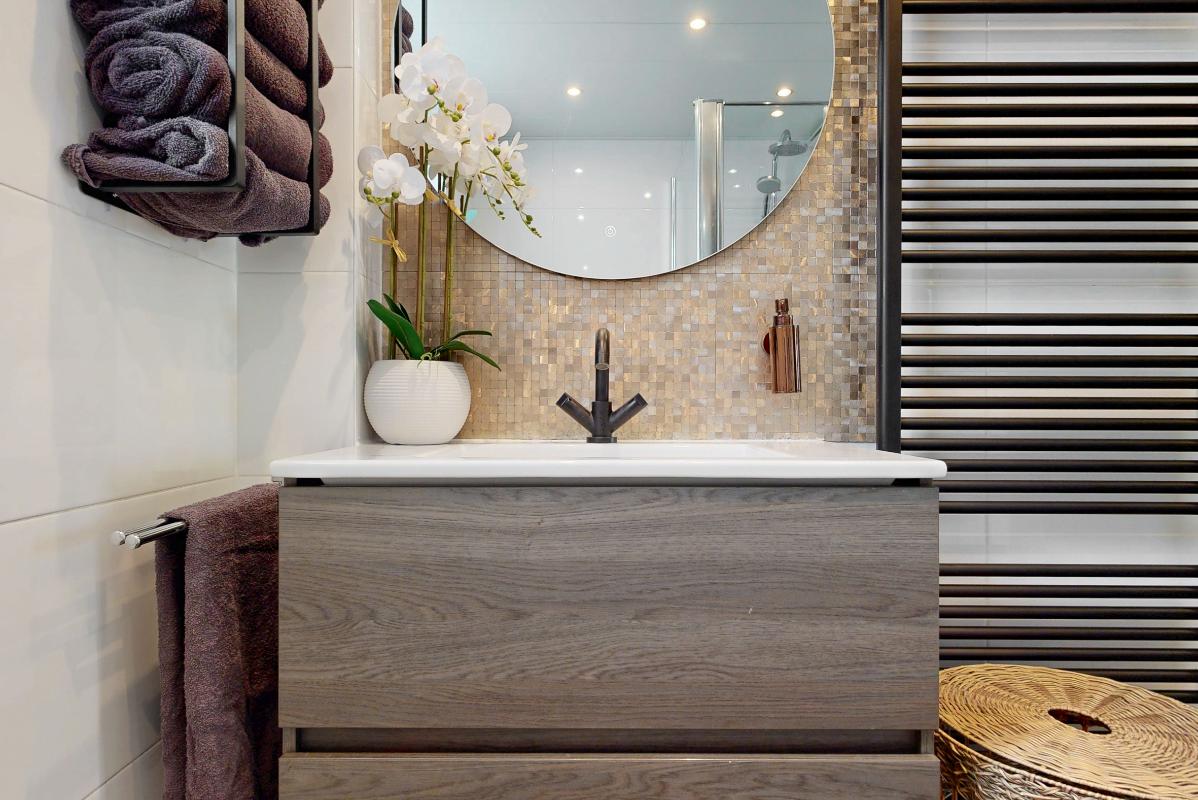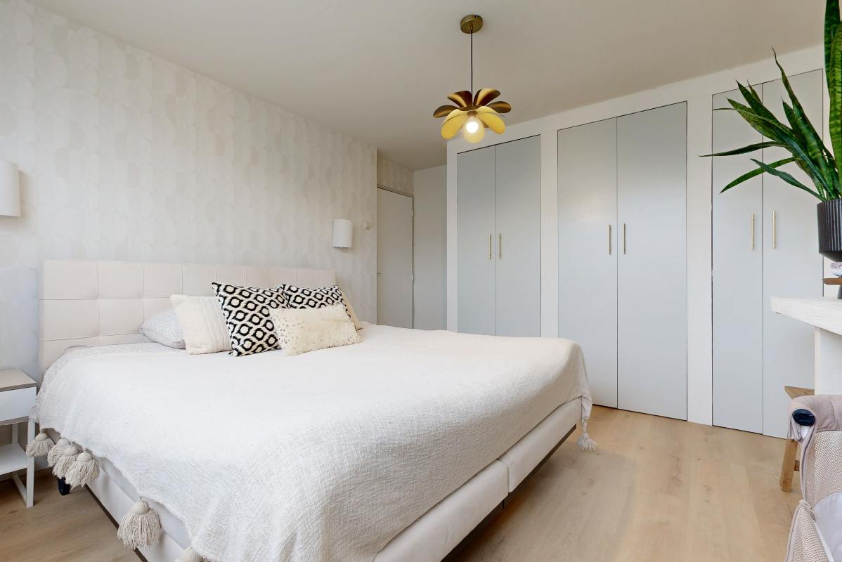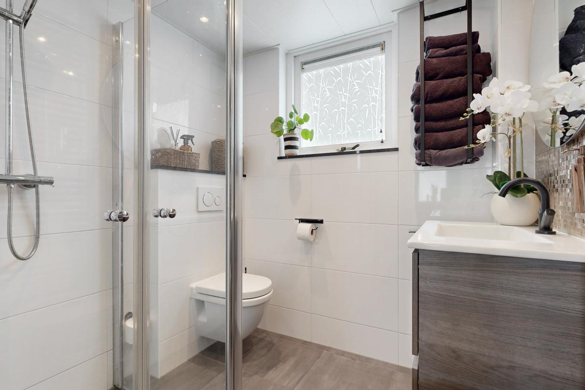 Op de eerste verdieping geeft de overloop toegang tot drie slaapkamers en de badkamer. De grootste slaapkamer beschikt over inbouwkasten en rolluiken. Ook de andere slaapkamer aan de achterzijde is voorzien van rolluiken. De badkamer is compleet uitgerust met een inloopdouche, toilet, wastafel met meubel, designradiator en een spiegel met verlichting.