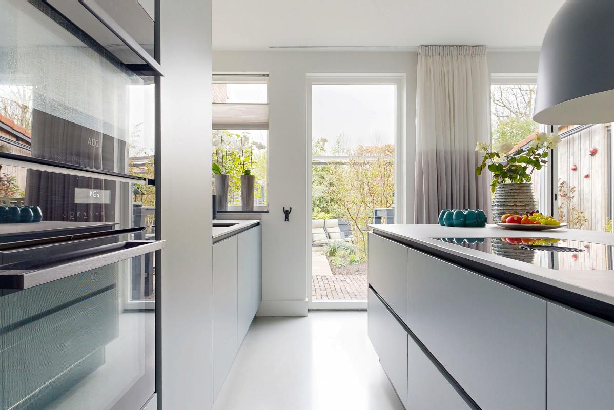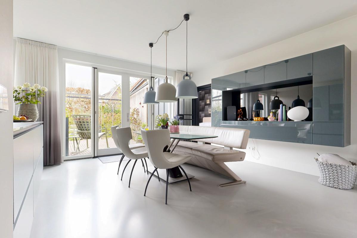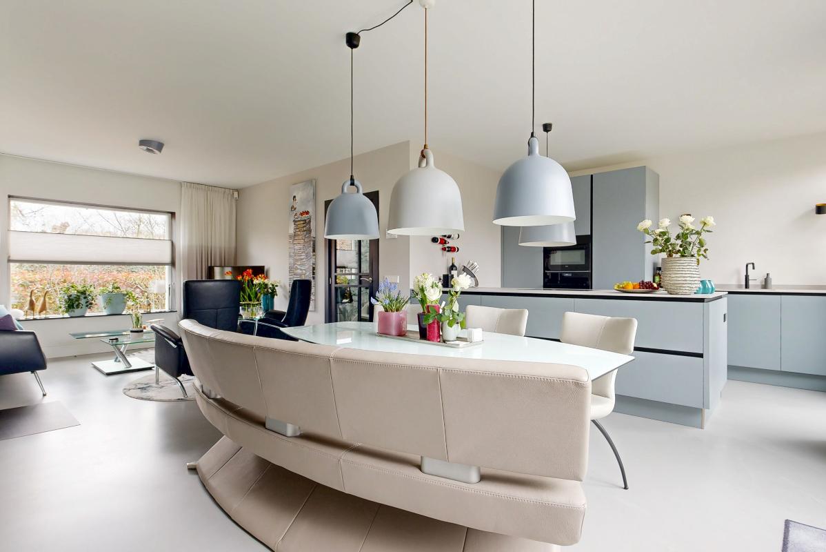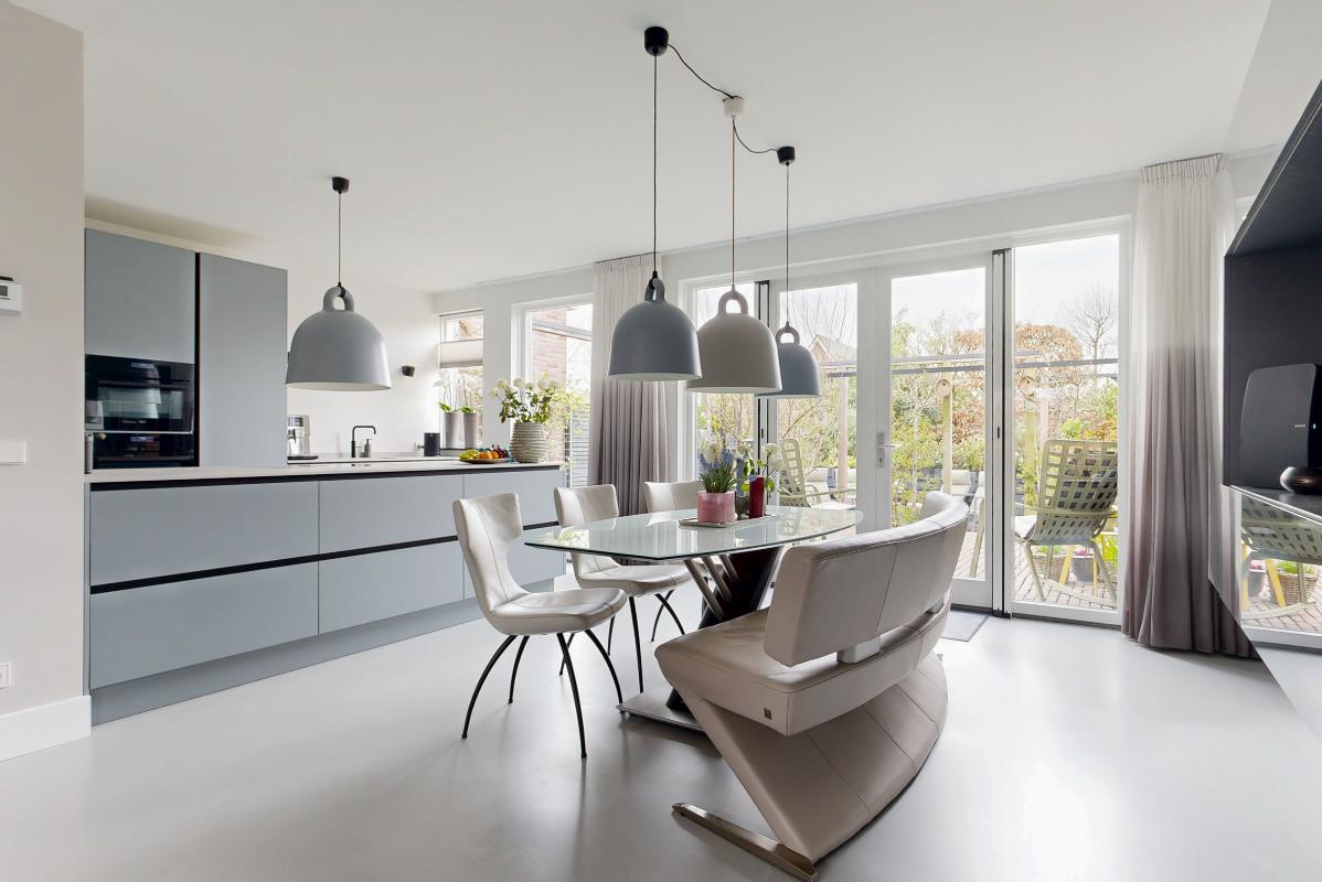 Bij binnenkomst kom je in de hal met meterkast, toilet, kelderkast en trapopgang. Vanuit hier loop je door naar de sfeervolle woonkamer aan de voorzijde, waar de open haard en natuurstenen vensterbank direct opvallen. De moderne open keuken met kookeiland vormt het hart van de woning. Hier kook je met plezier dankzij de 4-pits Bora kookplaat met geïntegreerde afzuiging. Ook is de keuken voorzien van een oven, combi-magnetron, koelkast, vaatwasser met liftfunctie en Quooker. Extra prettig is dat de hal, woonkamer en keuken zijn voorzien van een strakke gietvloer met vloerverwarming.