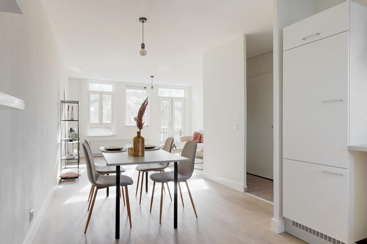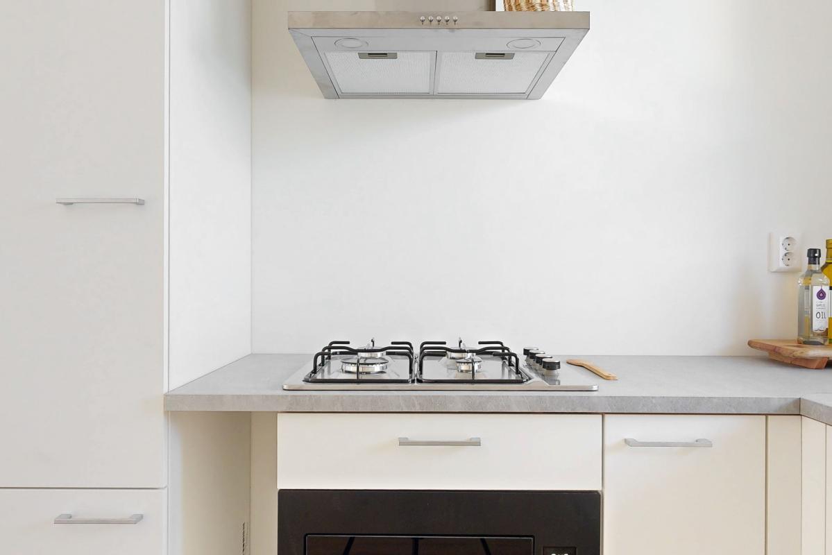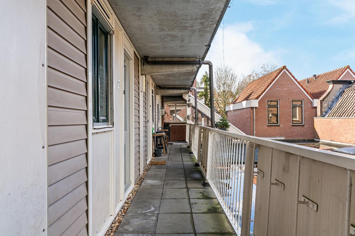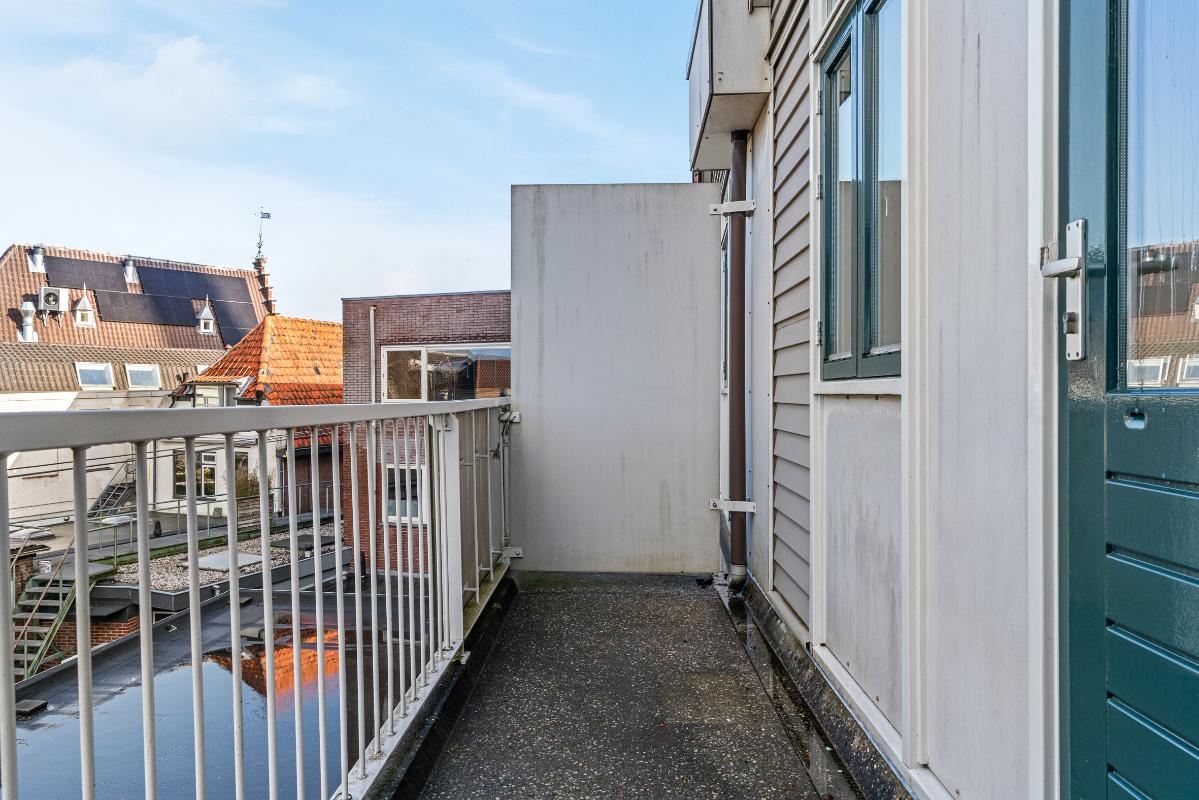 Wonen op de eerste verdieping Via de Grotesteeg bereik je het appartement via de trap en galerij. In de hal vind je de intercom, het toilet en de trap naar boven. De woonkamer ligt aan de voorzijde en beschikt over een Frans balkon aan de Wagenstraat, waar je het levendige stadscentrum ervaart en een leuk uitzicht hebt. Aan de achterzijde bevindt zich de open keuken in een praktische L-opstelling.