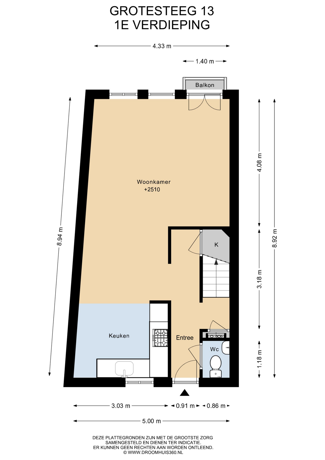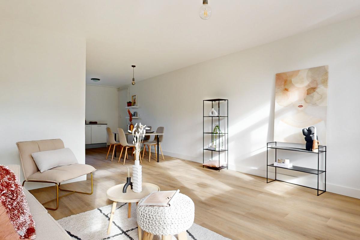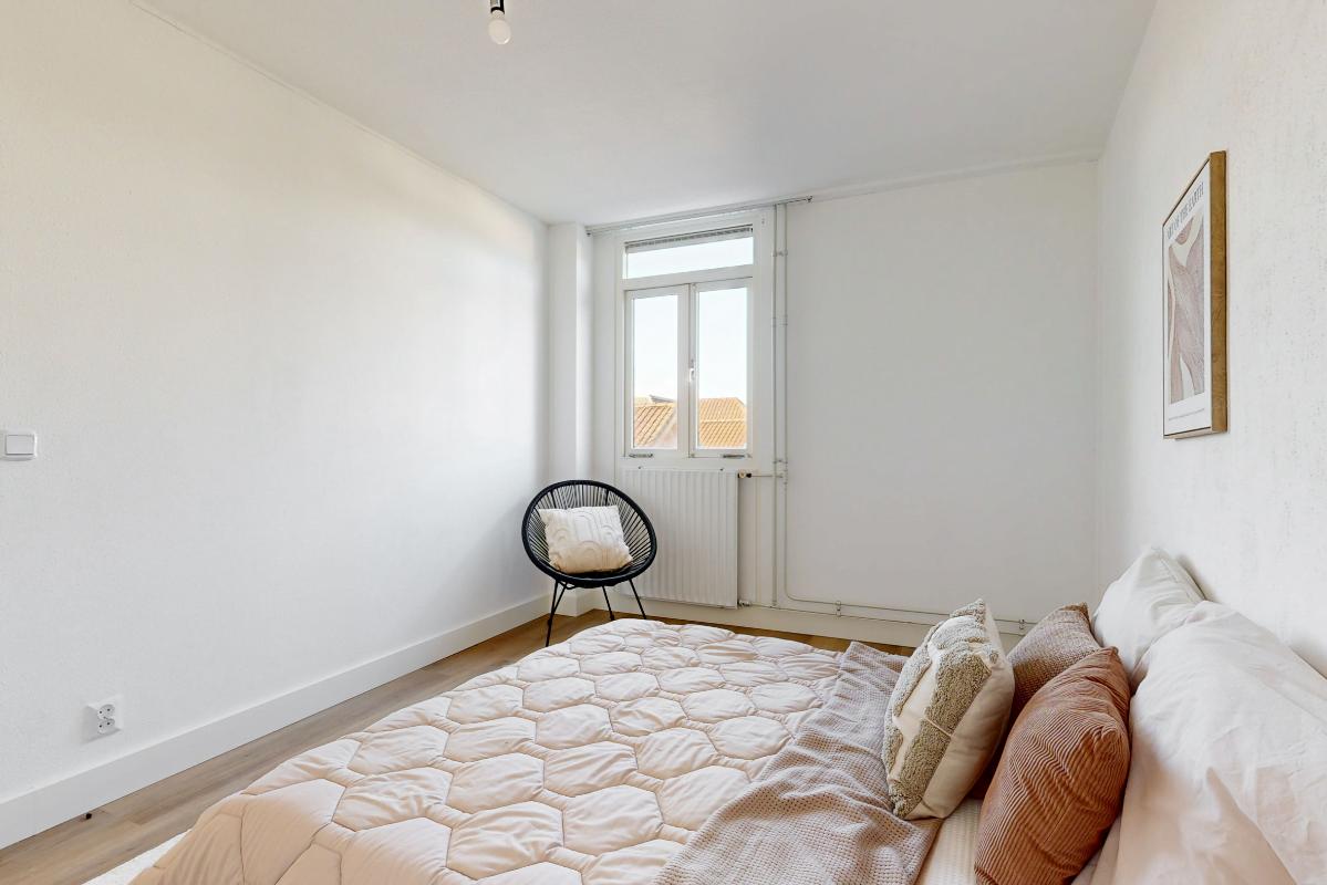 Wonen op de eerste verdieping Via de Grotesteeg bereik je het appartement via de trap en galerij. In de hal vind je de intercom, het toilet en de trap naar boven. De woonkamer ligt aan de voorzijde en beschikt over een Frans balkon aan de Wagenstraat, waar je het levendige stadscentrum ervaart en een leuk uitzicht hebt. Aan de achterzijde bevindt zich de open keuken in een praktische L-opstelling.