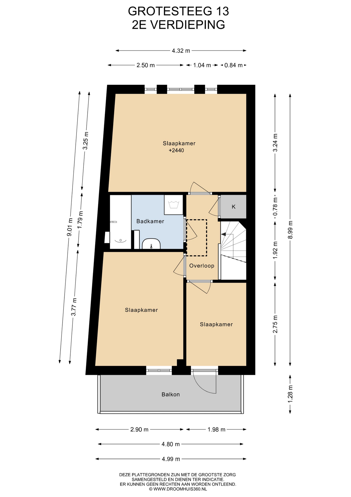 Tweede verdieping Op deze verdieping vind je drie (slaap)kamers. Eén van de kamers geeft toegang tot het balkon op het westen, waar je heerlijk kunt genieten van de avondzon. Op de overloop is een handige opbergkast aanwezig. De badkamer is praktisch ingericht met een wastafel, een ligbad met douchefunctie en een aansluiting voor de wasmachine. Daarnaast bereik je via een vlizotrap de ruime vliering, ideaal voor extra opslag.