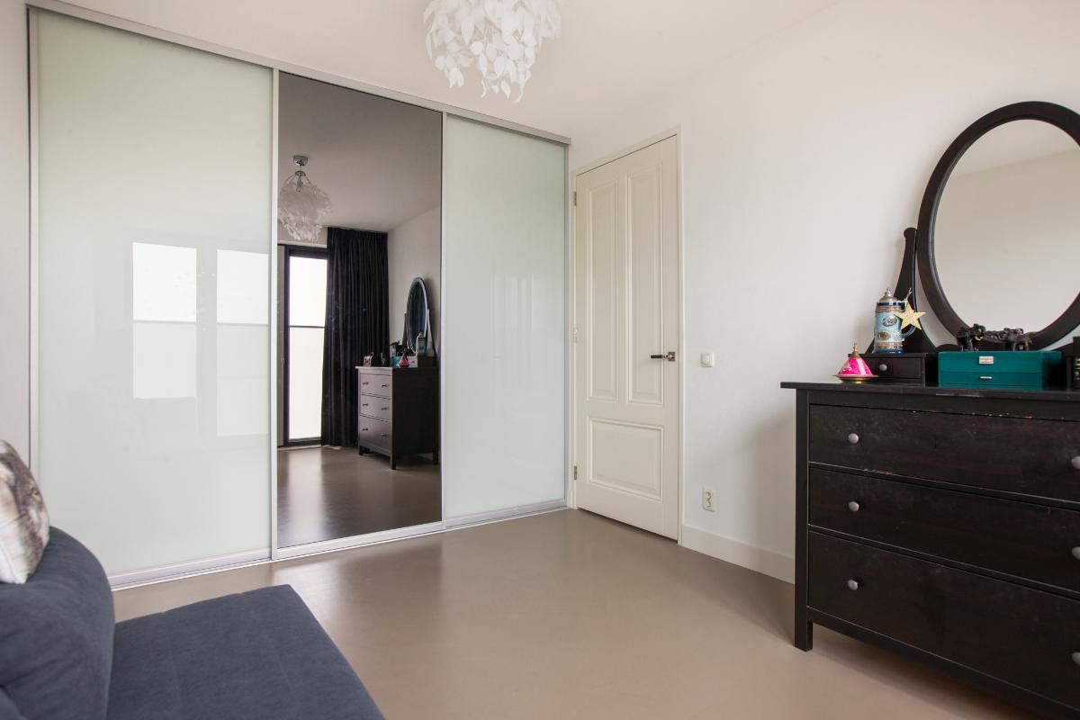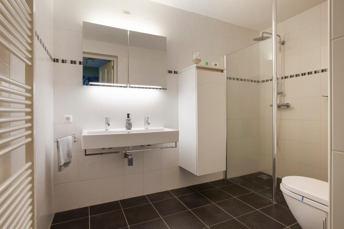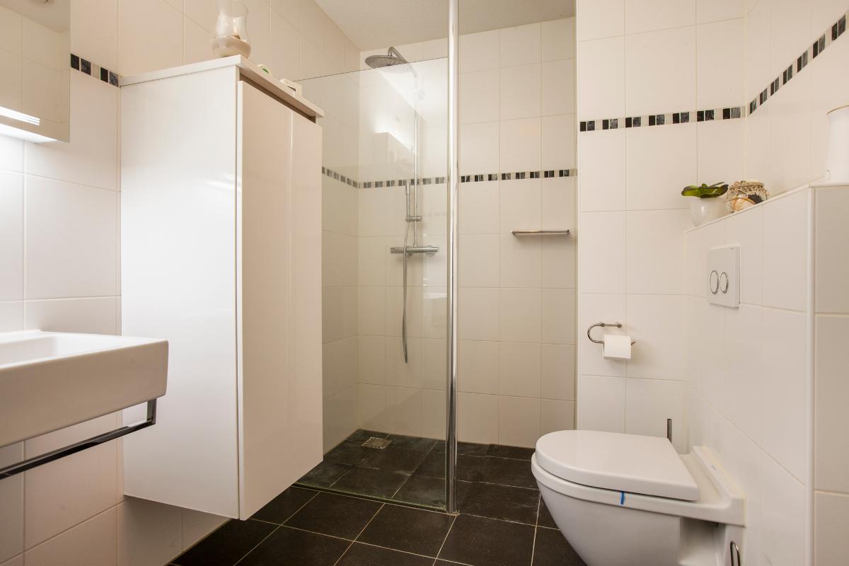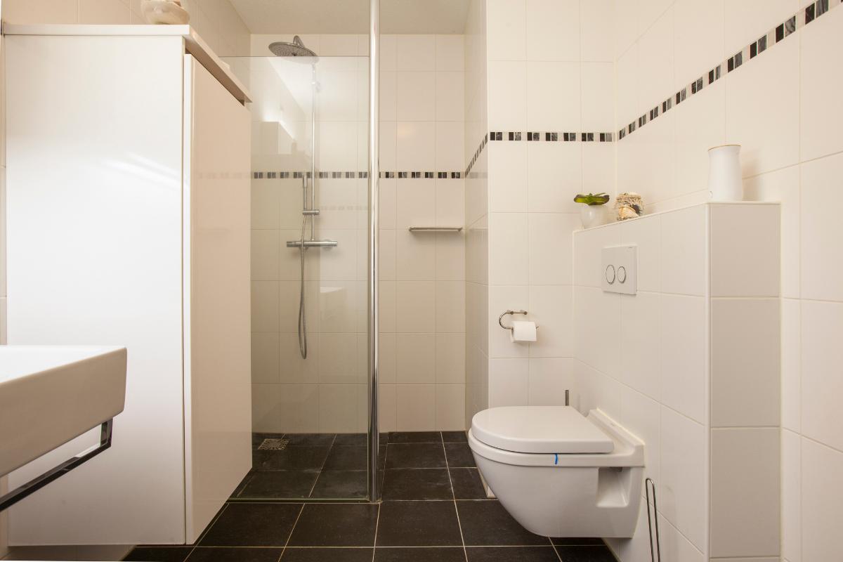 Het appartement beschikt over twee comfortabele en ruime slaapkamers, beide voorzien van praktische vaste schuifkasten. De moderne badkamer is netjes afgewerkt en uitgerust met een royale inloopdouche, een wastafelmeubel met dubbele kraan, een toilet en een handdoekenradiator. Daarnaast beschikt het appartement over een separaat toilet en een praktische bergruimte met witgoedaansluiting.