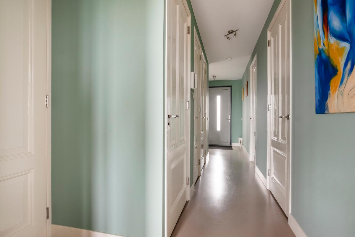 Via de verzorgde centrale entree met videofooninstallatie en de fraai aangelegde binnentuin betreed je het moderne appartementencomplex. Met de lift of trap bereik je het appartement op de vierde verdieping, waar de ruime hal je direct een warm welkom geeft. Hier vind je de garderobe, meterkast, berging met CV-opstelling en toegang tot de verschillende vertrekken.