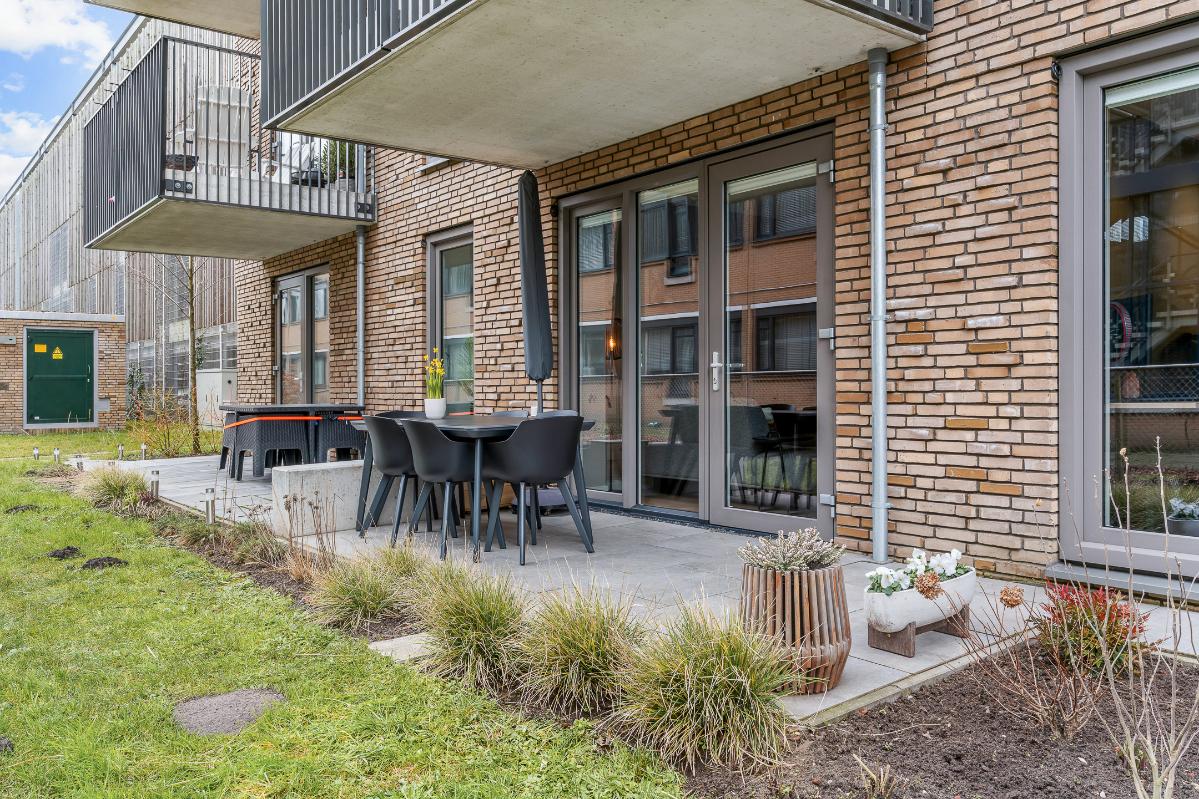 - Stijlvol begane grond appartement met twee slaapkamers en terras/tuin - Open keuken met Siemens inbouwapparatuur - Moderne badkamer - Zonneterras gelegen op het zuidwesten - Verwarming door middel van een warmtepomp, verwarmt in de winter en koelt in de zomer - Eigen parkeerplaats in de parkeergarage en drie eigen fietsenplekken in de fietsenstalling - Laadpaal in de gemeenschappelijke ruimte van de parkeergarage - Gelegen op loopafstand van het NS-station en centrum - Maandelijkse VvE kosten (2026) voor het appartement € 111,02 en voor de parkeerplaats € 42,22 (totaal € 153,24) - Kosten lease van de warmtepomp ca. € 113,70 (inclusief garantie en onderhoud)