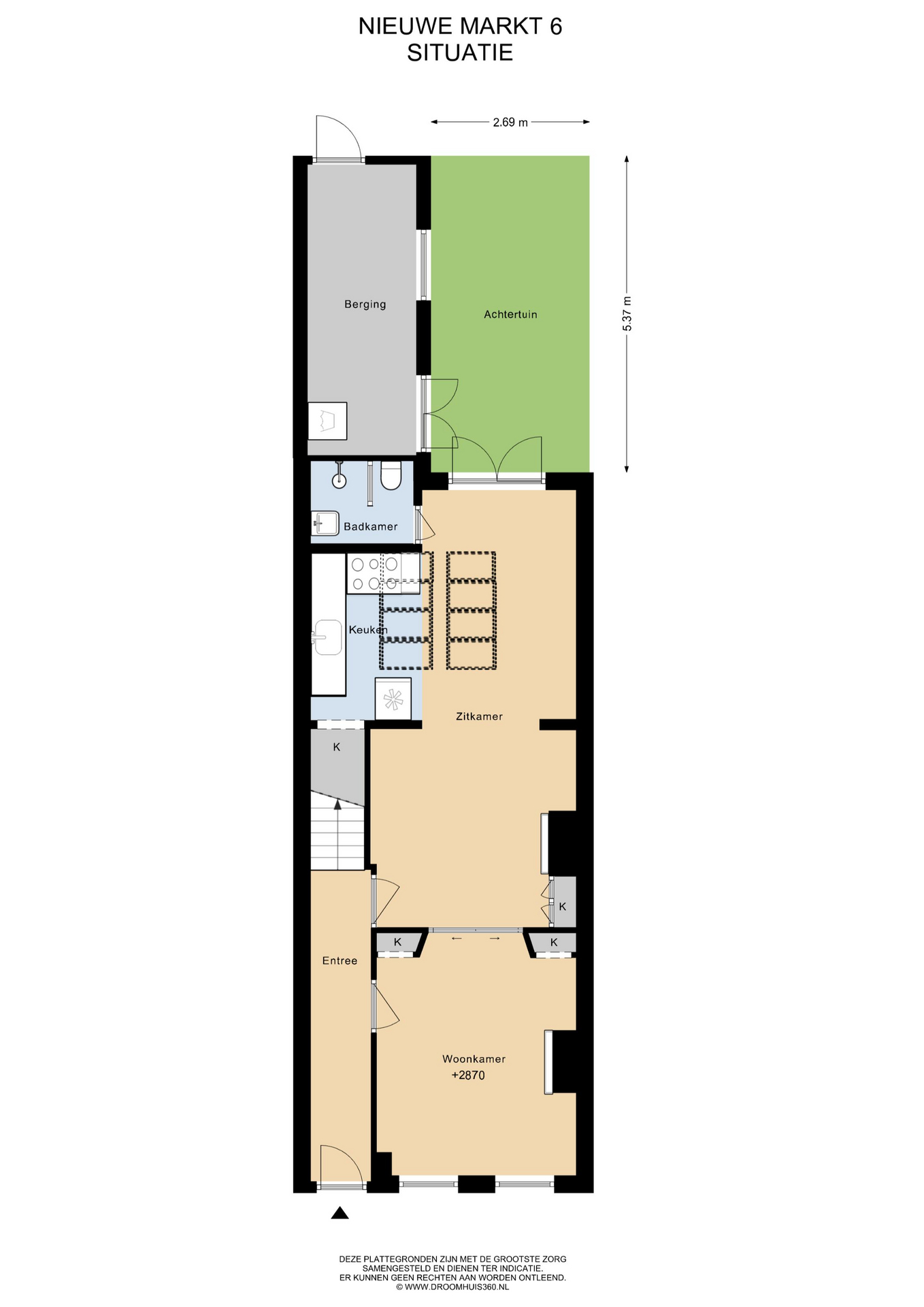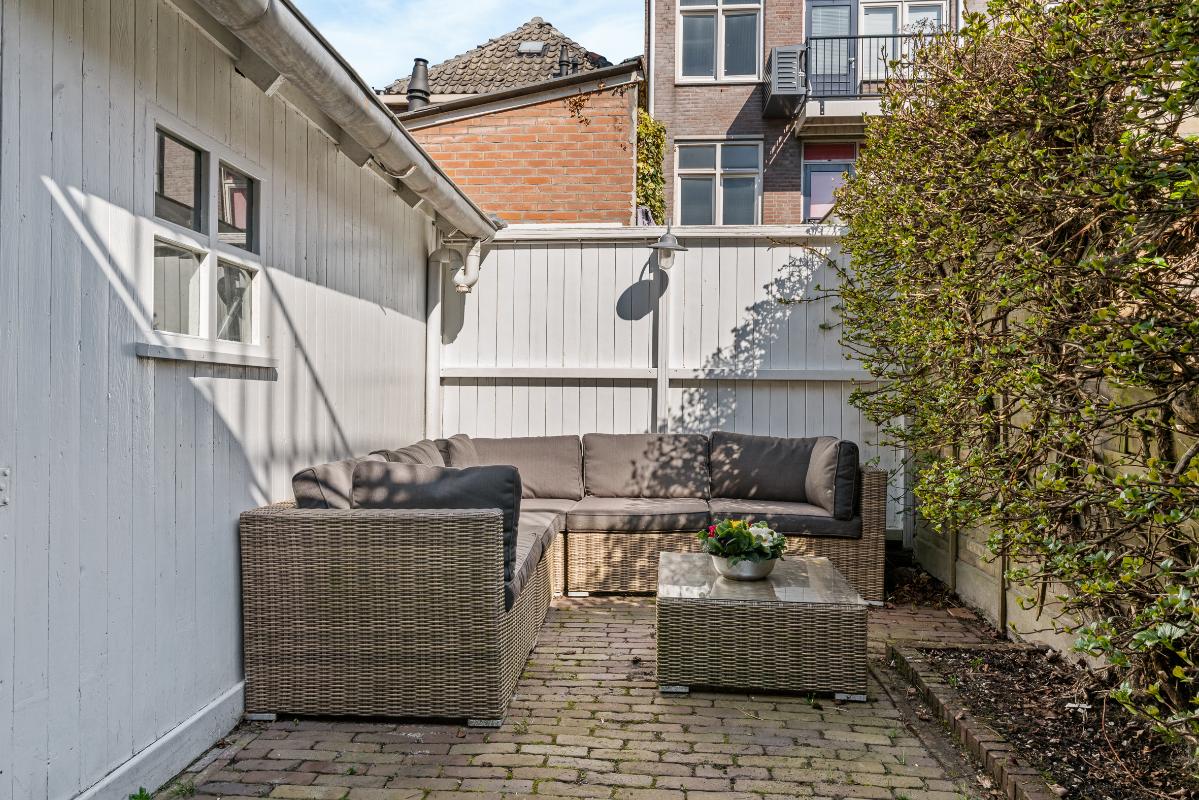 De achtertuin ligt op het noordoosten en is een fijne, beschutte plek waar je in de ochtend rustig met een kop koffie kunt beginnen en je de dag gezellig afsluit met een borrel met vrienden. In de tuin vind je een houten berging met daarin de cv-ketel en ook de opstelplaats voor de wasmachine en de droger. Er is een praktische achterom via de berging.