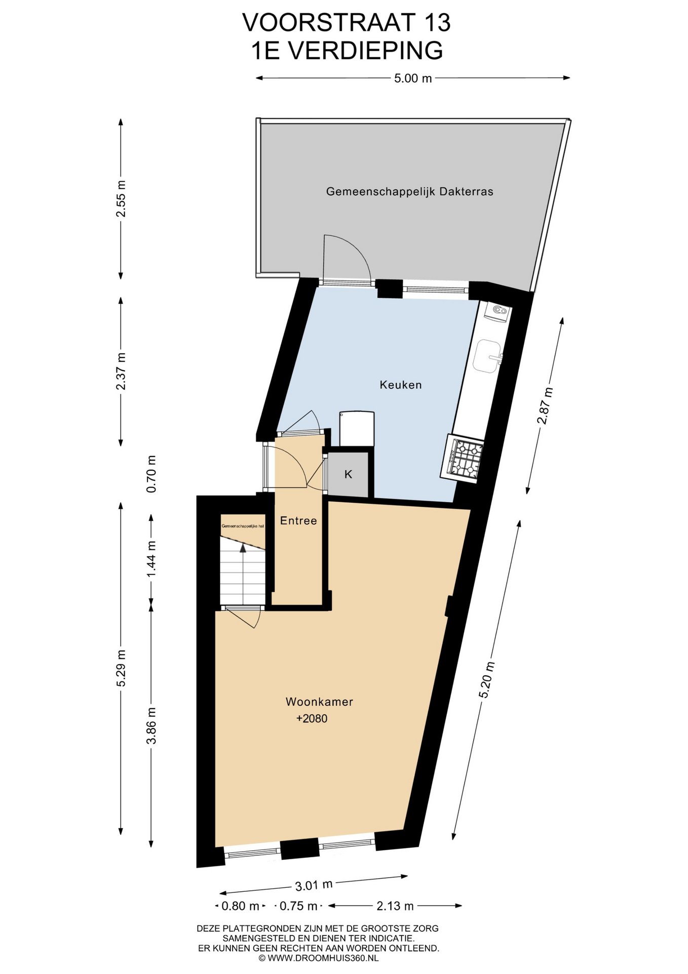 Appartement Voorstraat 13 Het 3-kamerappartement bestaat uit 64 m² woonoppervlakte en 22 m² overige inpandige ruimte. De kunststof kozijnen zijn voorzien van HR++ beglazing. Energielabel C. Het appartement is in gedateerde staat. De overige ruimte van 22 m² is een open ruimte op de verdieping. Middels een vaste trap en dakramen is deze "overige inpandige ruimte" te transformeren naar echte woonruimte.