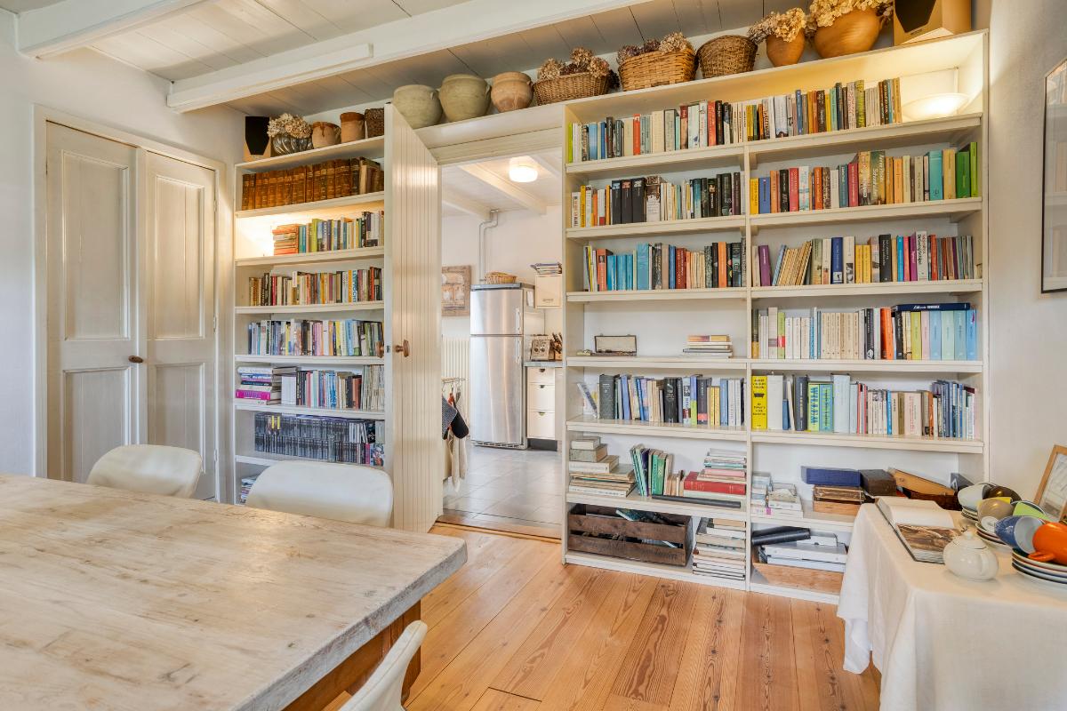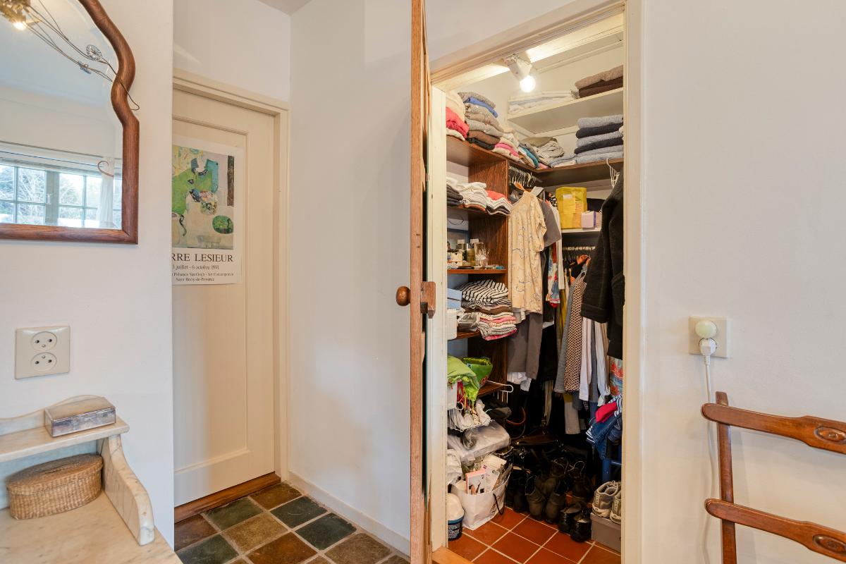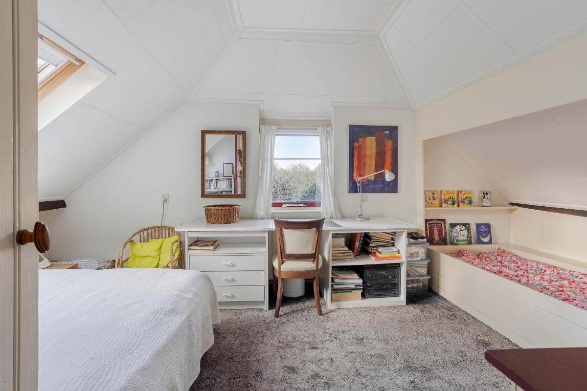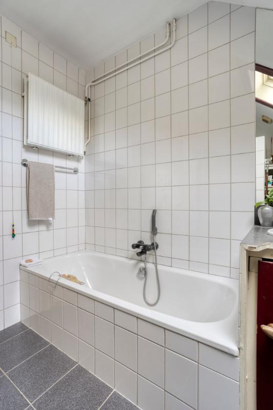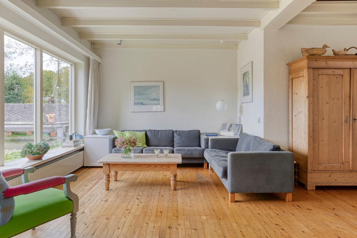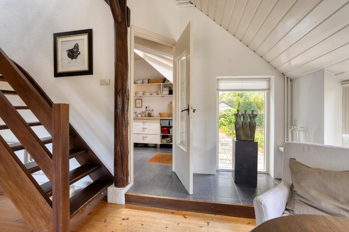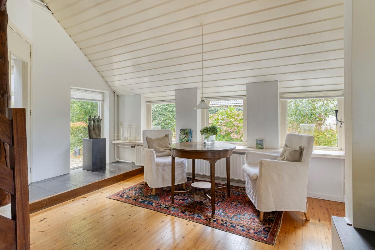 Indeling Begane grond: entree/hal met meterkast, garderobekast en vaste kast. De zeer charmante (voormalige) woonkamer aan de voorzijde is in gebruik als eetkamer. Deze eetkamer heeft een wijnkeldertje, een sfeervolle schouw, een wiemel en een op maat gemaakte boekenkast. Van de voormalige bedstedes is de één verbouwd tot werkhoek en de ander tot voorraadkast met als entree de authentieke/oorspronkelijke bedsteedeuren. Aansluitend bevindt zich de ruime keuken met zijentree en dakraam. De met de hand en op maat gemaakte keukeninrichting is v.v. hard stenen werkblad, diverse houten lades, een gasfornuis met twee ovens, afzuigkap en vaatwasser. De heerlijk lichte en zonnige L-vormige woonkamer ligt aan de achterzijde, is tuingericht en biedt optimale privacy. De woonkamer heeft een open haard, een op maat gemaakte boekenkast, tuindeur en een open trap naar de verdieping. De centraal in de woning gelegen hal v.v. vaste kast en dakraam. Deze hal geeft toegang tot de toiletruimte met hangtoilet en fonteintje, tot de ouderslaapkamer met vaste kasten en tot de geheel betegelde badkamer met ligbad, aparte douche, wastafel en wasmachine aansluiting. De inpandige c.v.ruimte is van buitenaf te bereiken. 1e Verdieping: overloop/videruimte met dakraam, toegang tot zolderruimte boven het voorhuis en tot de twee slaapkamers resp. één met dakkapel, vaste open kast en wastafelmeubel en één met dakraam, vaste bedbank en vaste kast en wastafelmeubel.