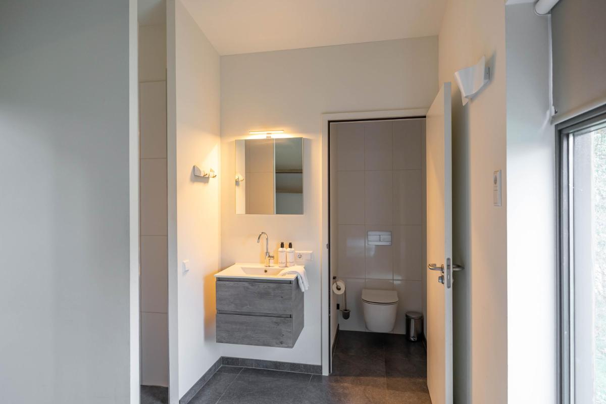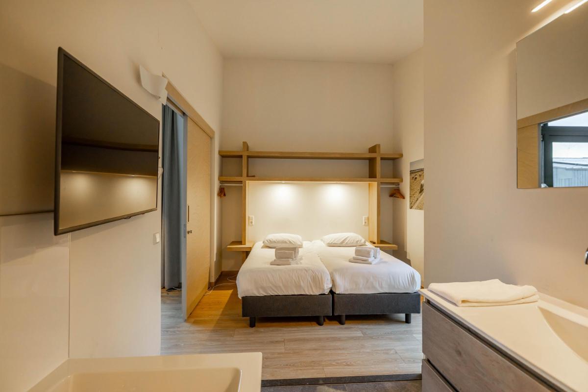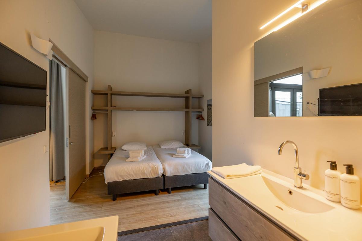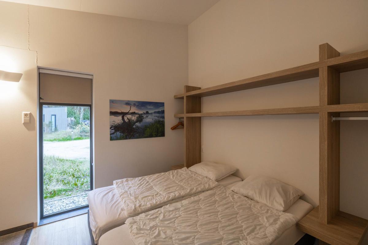 De bungalow beschikt over twee volwaardige slaapkamers, elk met een eigen karakter en hoog afwerkingsniveau. De hoofdslaapkamer is voorzien van een fraai vormgegeven badkamer en-suite, waardoor een privé wellnessgevoel ontstaat. De tweede slaapkamer ligt gunstig in de woning en heeft toegang tot een eigen separate badkamer, wat de woning bijzonder praktisch maakt voor zowel gezinnen als gasten.
