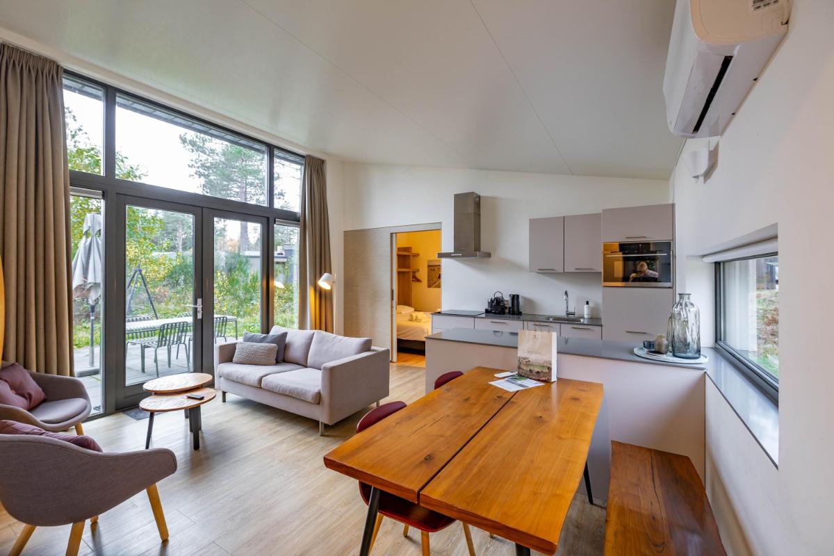 Highlights - Gelegen in een 5 sterren natuurgebied; - Bouwjaar 2018; - Uitstekend geïsoleerd; - Ruime kavel met eigen grond; - Ligging tuin op het zuidwesten; - 2 ruime slaapkamers met badkamers ensuite; - Woning wordt als recreatiewoning verhuurd via Dutchen; - Goede verhuur opbrengsten; - Kan zowel voor eigen gebruik, als verhuur gekocht worden.