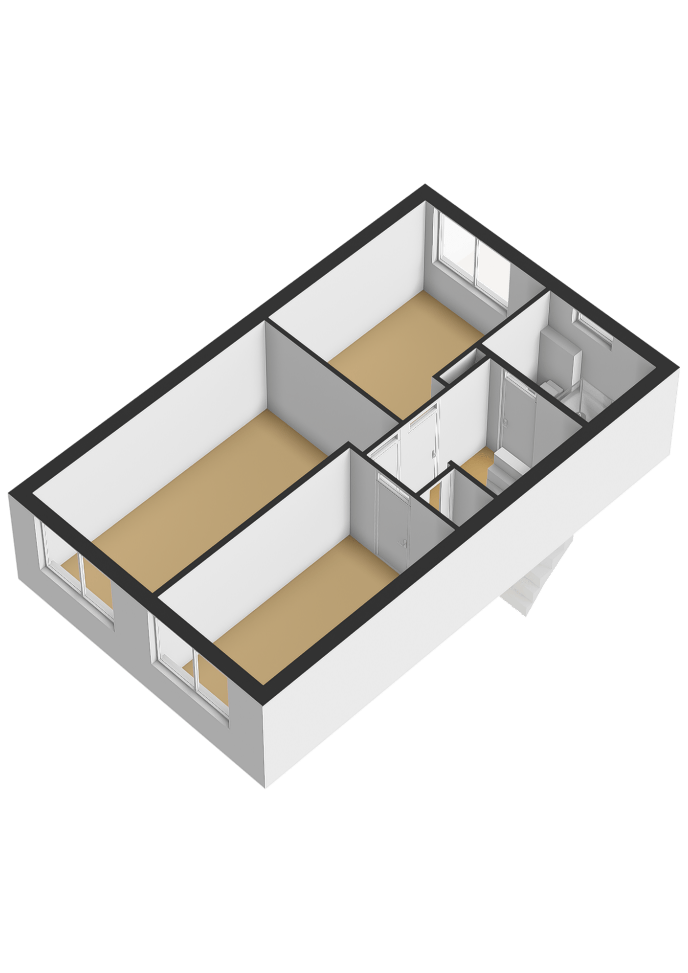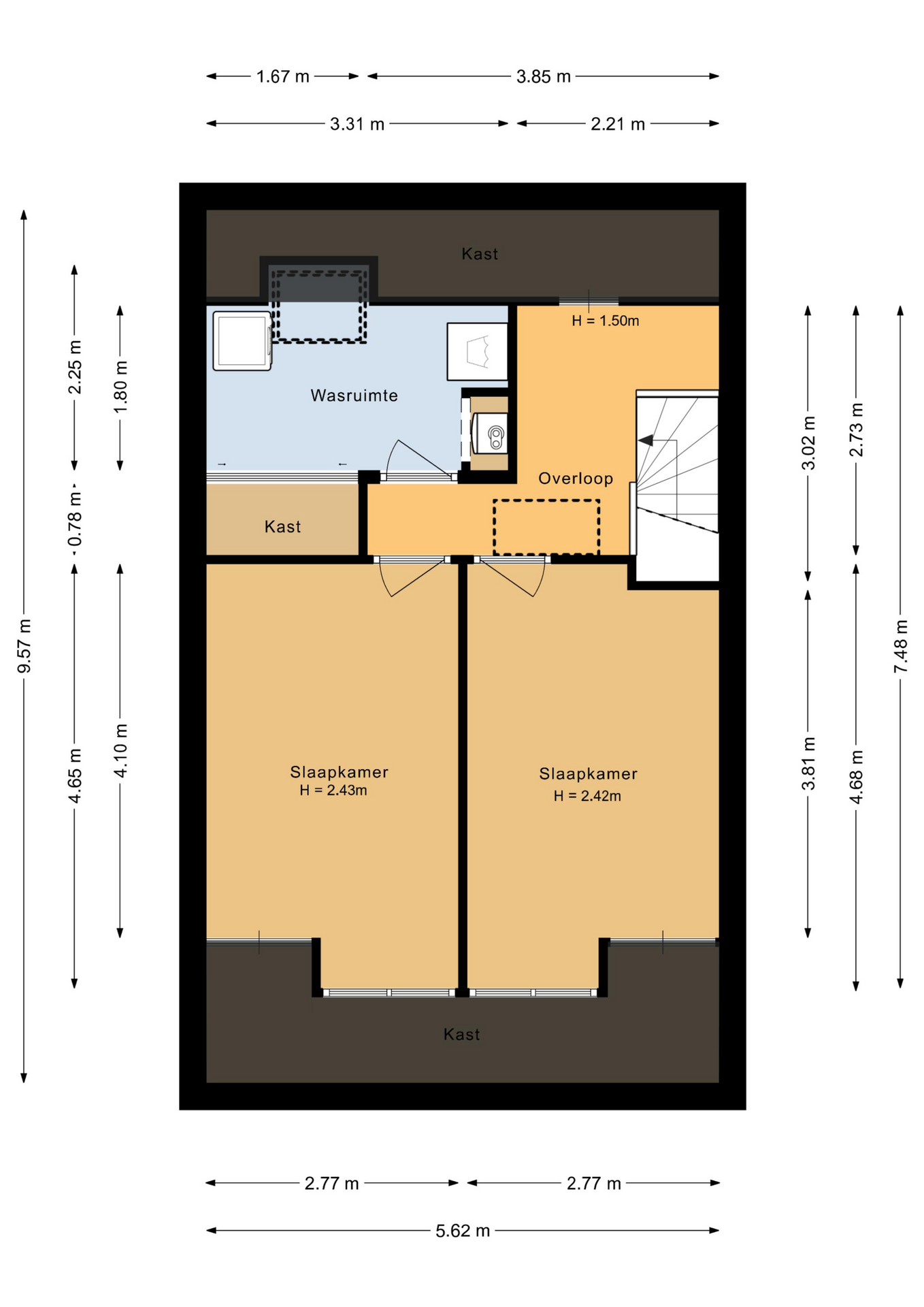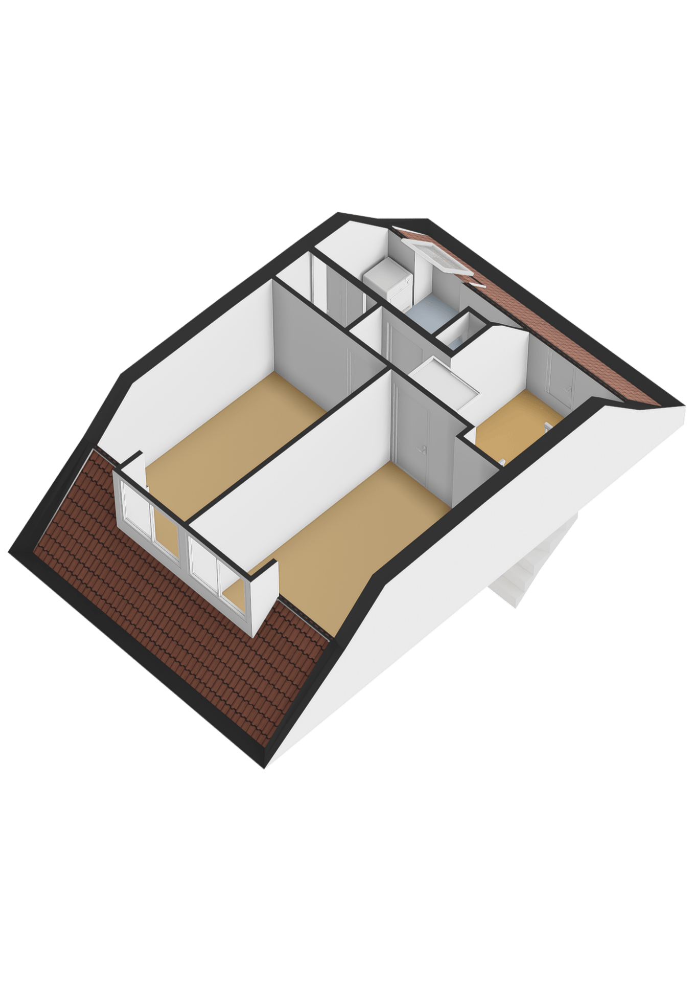 2e verdieping: De middels een vaste trap bereikbare 2e verdieping met dakkapel aan de voorzijde en Velux dakraam aan de achterzijde is eveneens ruim van formaat. Hier treft u een 4e en 5e slaapkamer voorzien van genoemde dakkapel. Een wasruimte met opstelplaats voor de wasmachine, droger, CV-ketel alsmede een vaste kast completeert deze verdieping.