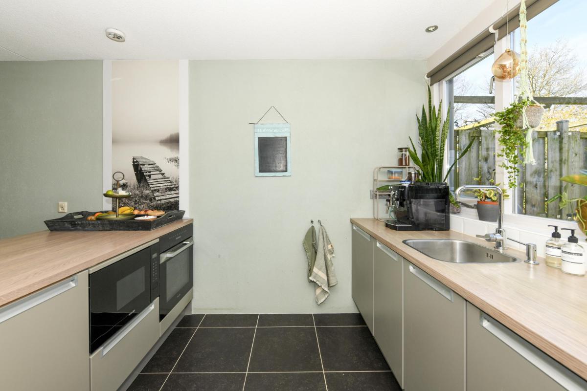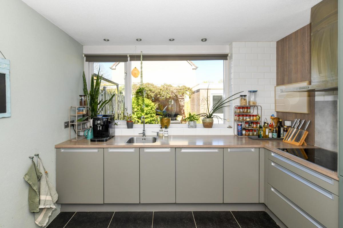 Indeling: Begane grond: De parterre bestaat uit de hal met meterkast. Middels een fraaie steellook deur betreedt u de woonkamer. De ruime living is licht door de grote raampartij aan de voorzijde van de woning en geeft fraai vrij uitzicht op het vele groen. De open keuken aan de uitgebouwde achterzijde is voorzien van L -vormig keukenblok met een inductie kookplaat, koel-/vriescombinatie, vaatwasmachine, oven, magnetron en afzuigkap. Een tweede hal aan de achterzijde geeft u toegang tot de toiletruimte met fontein, ruime opbergkast en deur naar de achtertuin. In het midden van de woning is de dichte trap naar de 1e verdieping gesitueerd.