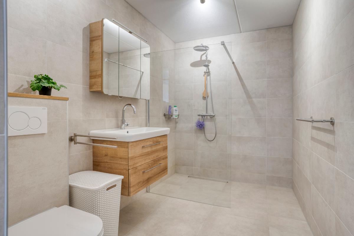 Eerste verdieping De ruime overloop op de 1e verdieping, met kast met CV-ketel, verbindt een viertal vertrekken te weten 3 volwaardige slaapkamers waarvan 1 aan de voorzijde voorzien van een dakkapel met groot raampartij en de andere slaapkamers bevinden zich aan de achterzijde. De inpandige moderne badkamer is voorzien van een 2e toilet, inloopdouche, wastafelmeubel met spiegelkast en vloerverwarming. Deze verdieping is, met uitzondering van de badkamer voorzien van een laminaatvloer.