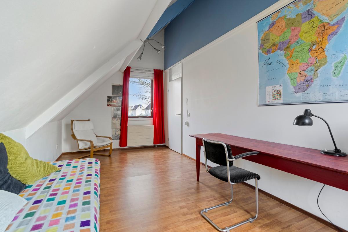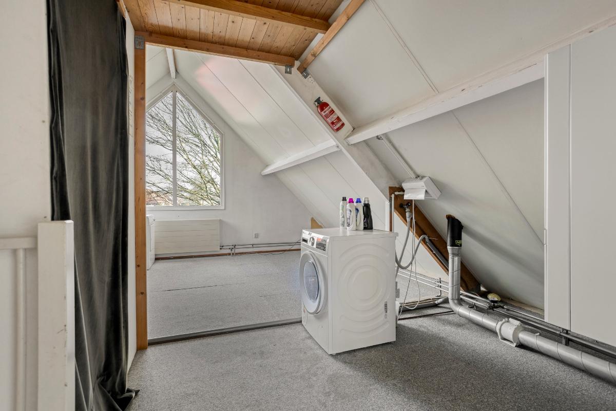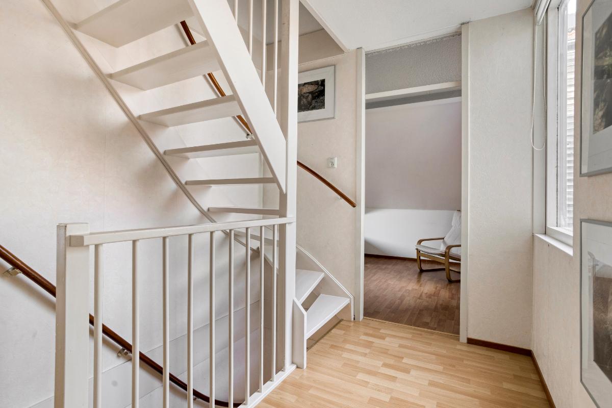 2e Verdieping Bereikbaar middels een vaste trap: overloop met veel bergruimte, opstelling van de Cv-ketel en wasmachine en toegang naar 2 ruime slaapkamers. Op de slaapkamer aan de achterzijde is ook een vliering gemaakt. De gehele verdieping is voorzien van vloerbedekking.
