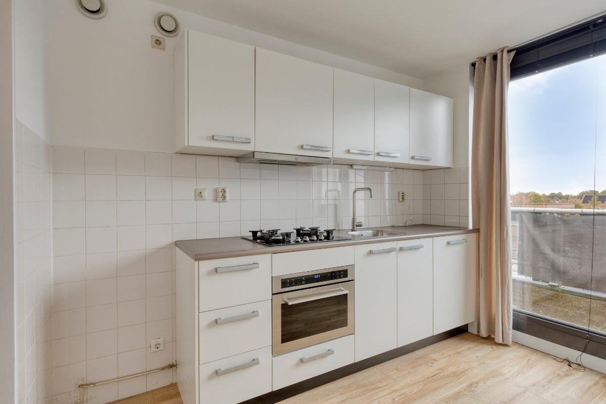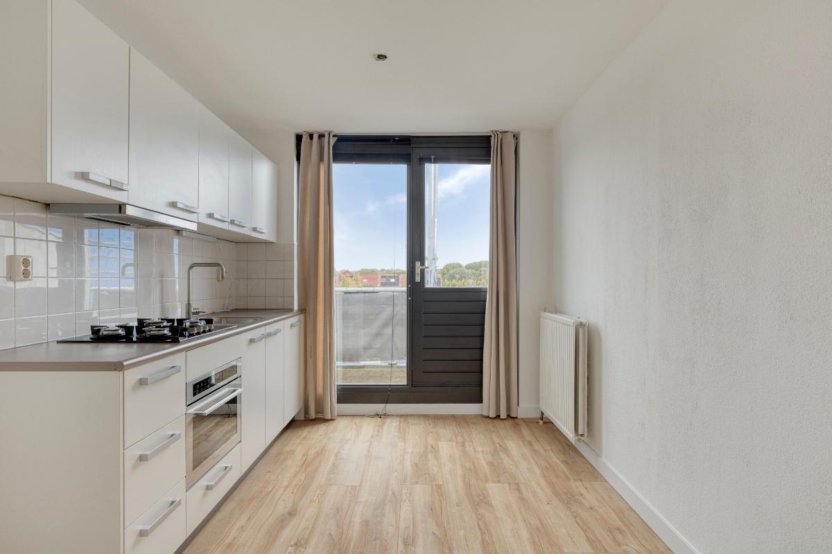 Eerste verdieping Op de overloop op de 1e verdieping treft u een toiletruimte met 2e toilet en fontein en de toegangsdeur naar de woonkamer en vernieuwde keuken. De living is zeer licht door de grote raampartijen en heeft een schuifpui naar het inpandige balkon welke uitzicht biedt over het gezellige Kerkplein. De halfopen keuken, met vaatwasser en zowel een aantal onder- als bovenkasten, is ruim en eveneens licht en geeft toegang tot het ruime balkon aan de achterzijde.