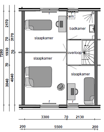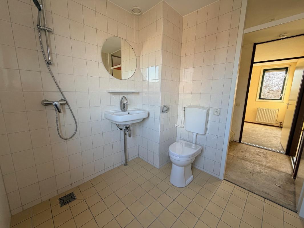 Eerste verdieping De overloop op de 1e verdieping verbindt een viertal vertrekken, te weten 3 volwaardige slaapkamers waarvan de hoofdslaapkamer en de kleine kamer zijn gelegen aan de voorzijde. De derde slaapkamer bevindt zich aan de achterzijde alsmede de badkamer voorzien van douche, 2e toilet, wastafel en aansluiting voor de wasmachine.